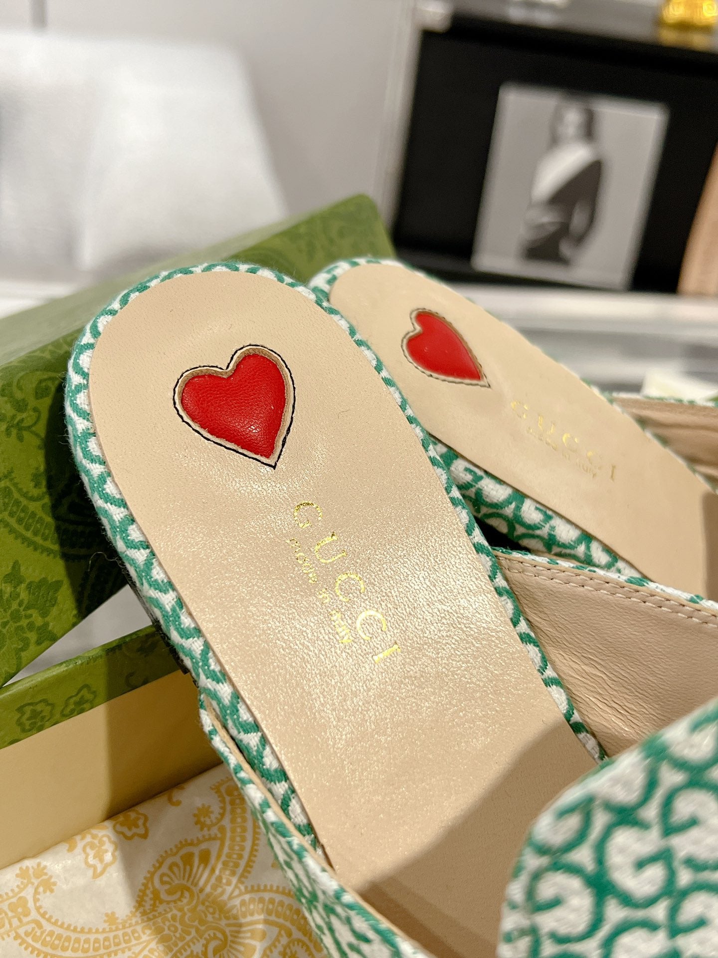 MEN'S MULE WITH HORSEBIT IN MINT GREEN MONOGRAM JACQUARD FABRIC