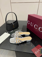 Women's Slide 25mm With Crystal Interlocking G Sliver Metalic Leather