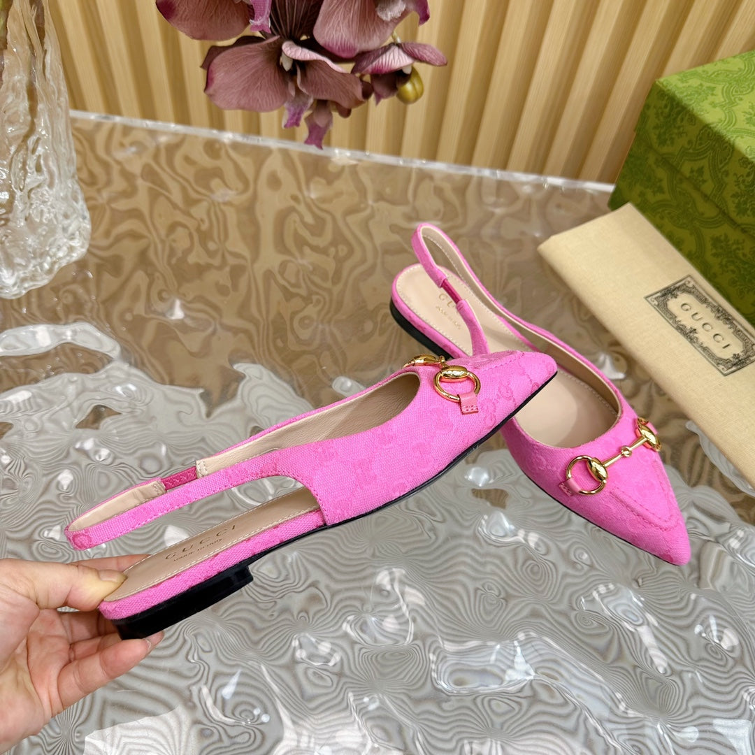 WOMEN'S SLIDE SANDAL WITH GG CROSS BRIGHT PINK CANVAS