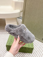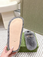GG 26ss Loafers Rhinestones Gray Wool 612028