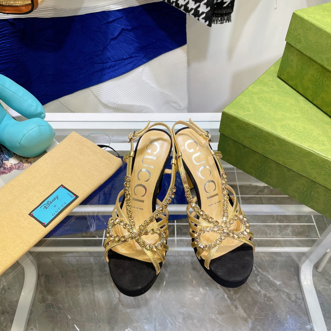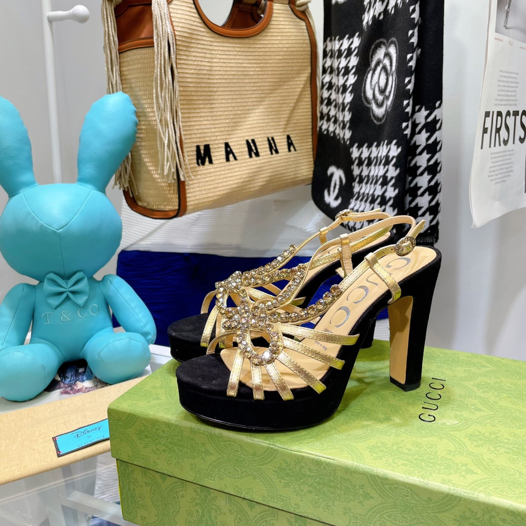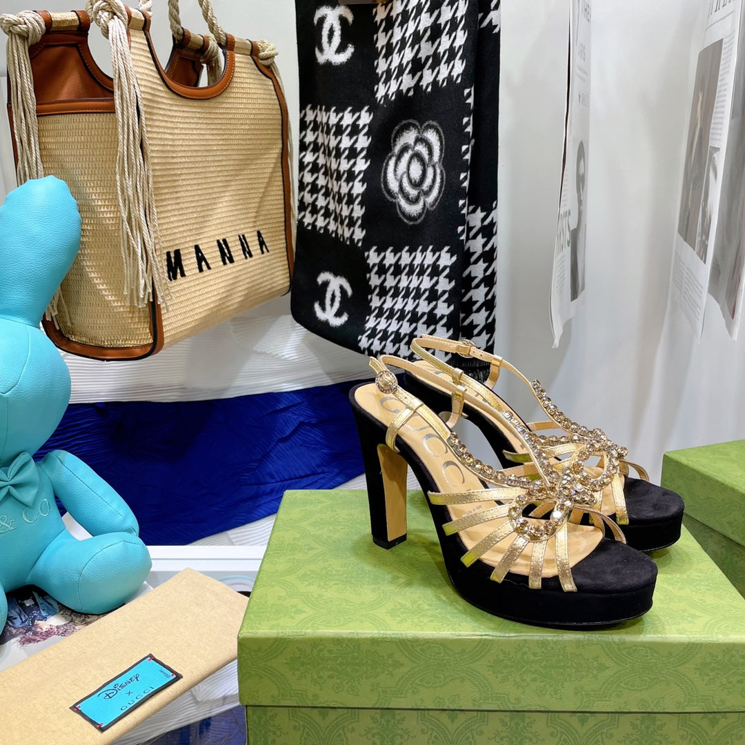 GG CRYSTAL HIGH HEEL SANDAL BLACK GOLD LAMBSKIN