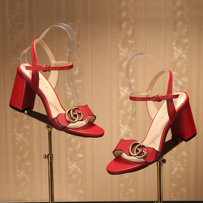 GG Marmont Ankle Strap Sandal 8cm Red Sheepskin 342565