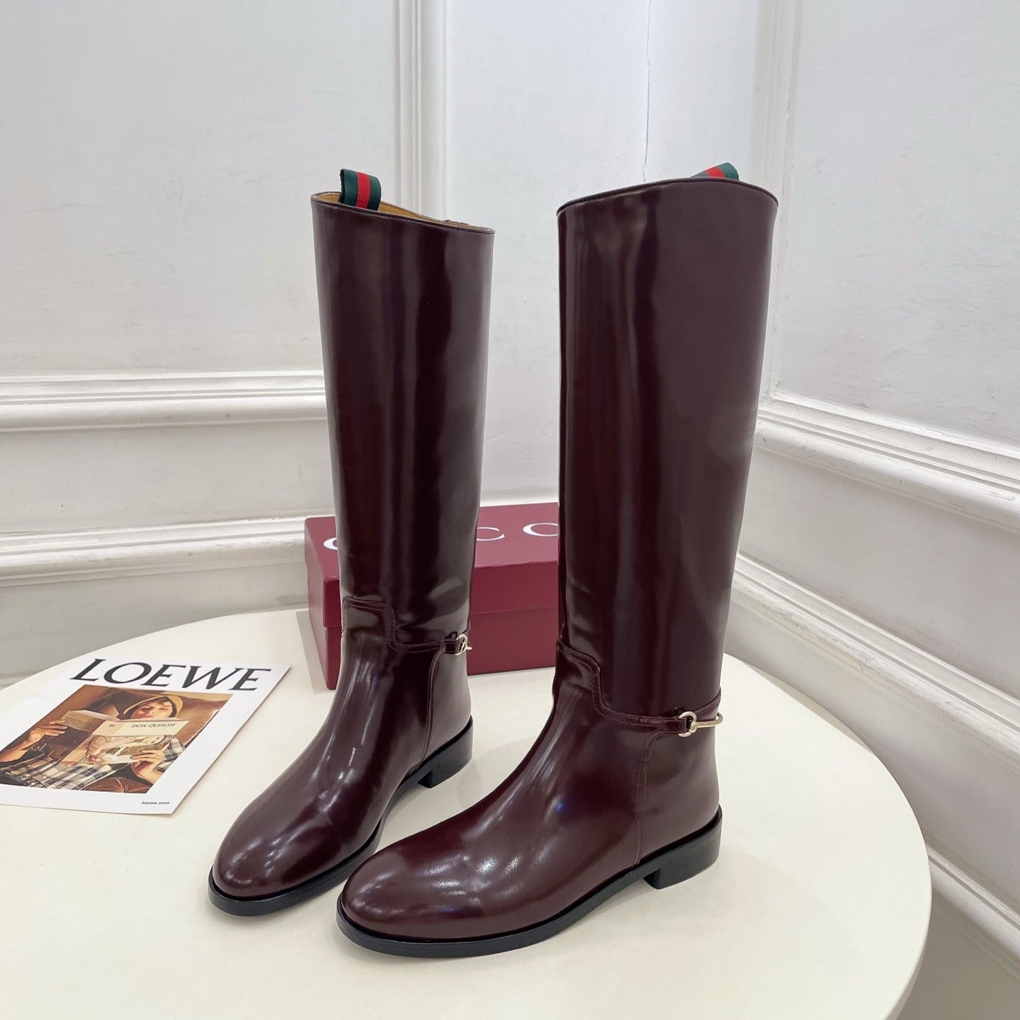 Gucci 25𝐬𝐬 horsebit long boots burgundy calfskin 435382