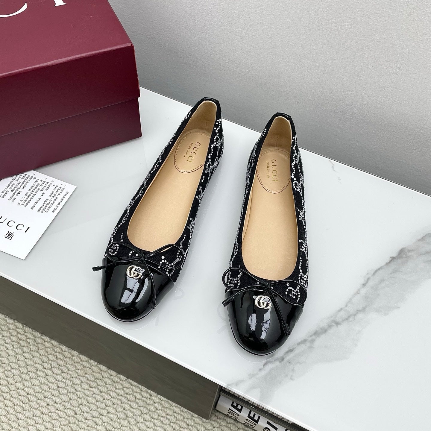 GG Women's Crystal Ballet Flat Black Denim Patent Leather Trim 511492
