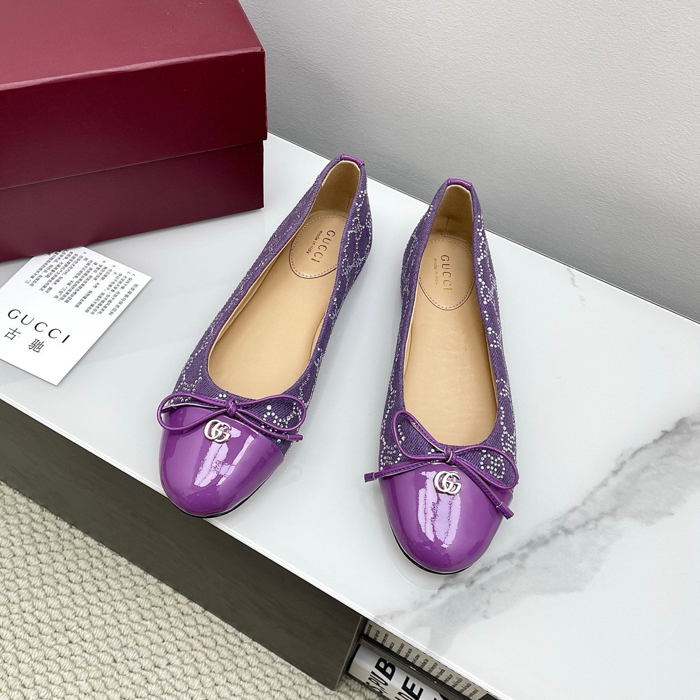 GG Women's Crystal Ballet Flat Purple Denim Patent Leather Trim 511493