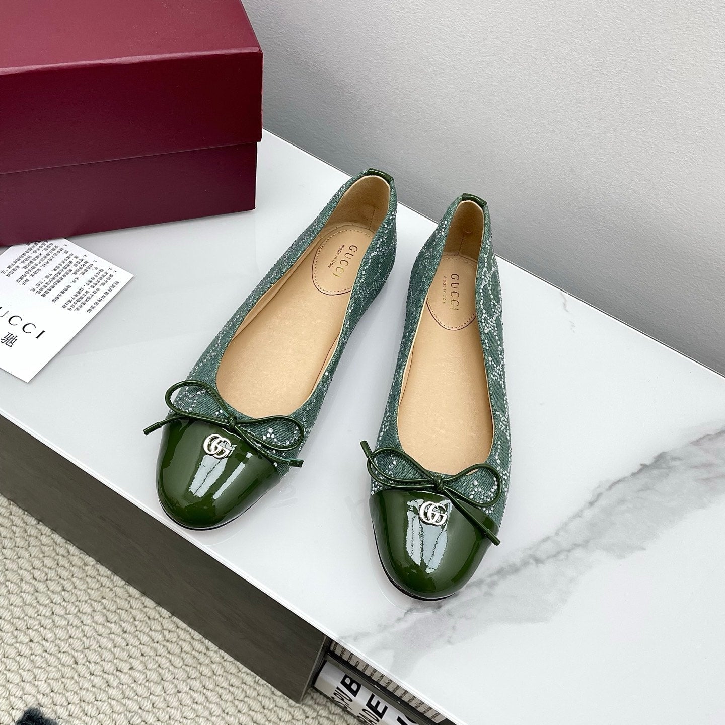 GG Women's Crystal Ballet Flat Dark Green Denim Patent Leather Trim 511495