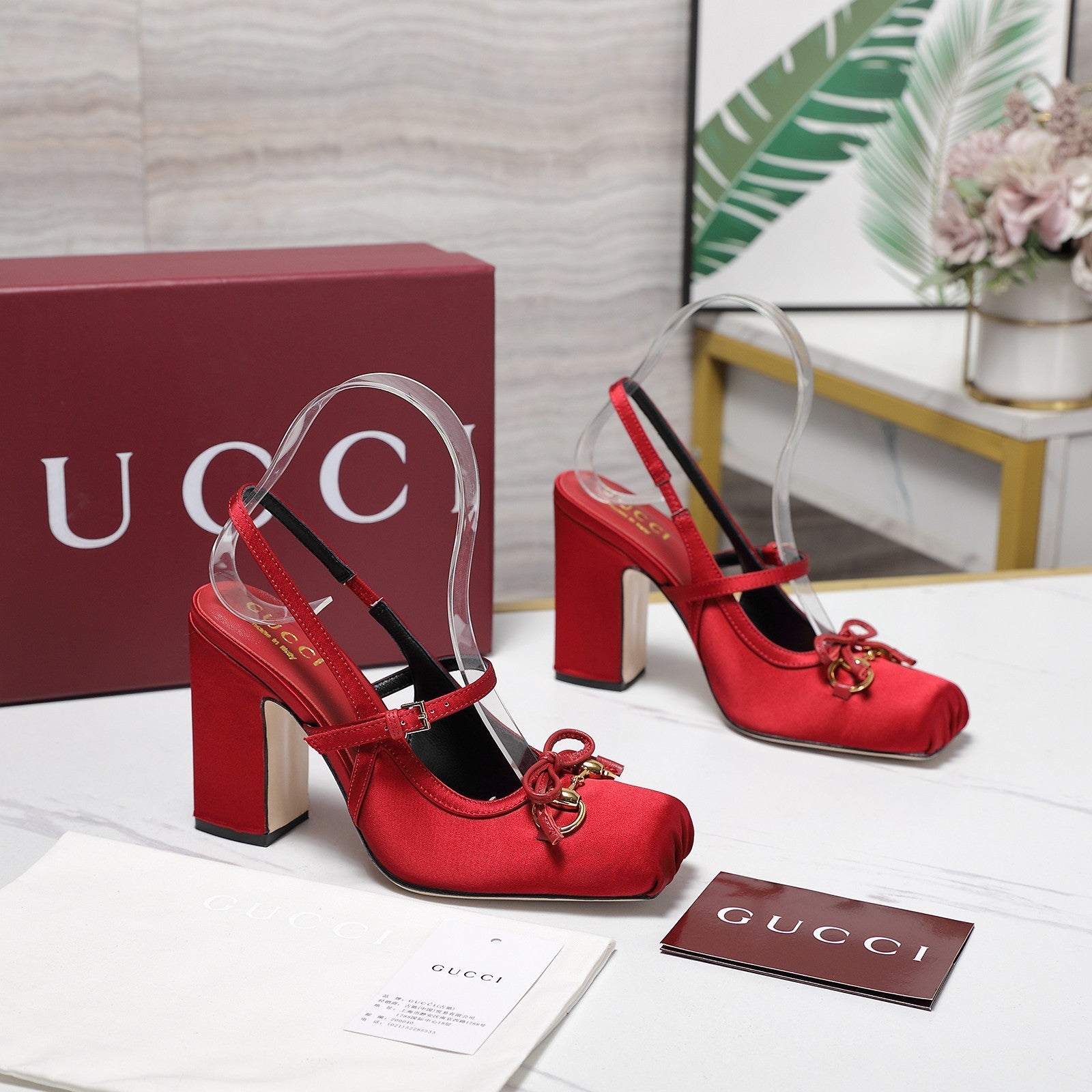Gucci Horsebit Slingback Pumps Red Satin Fabric 504423