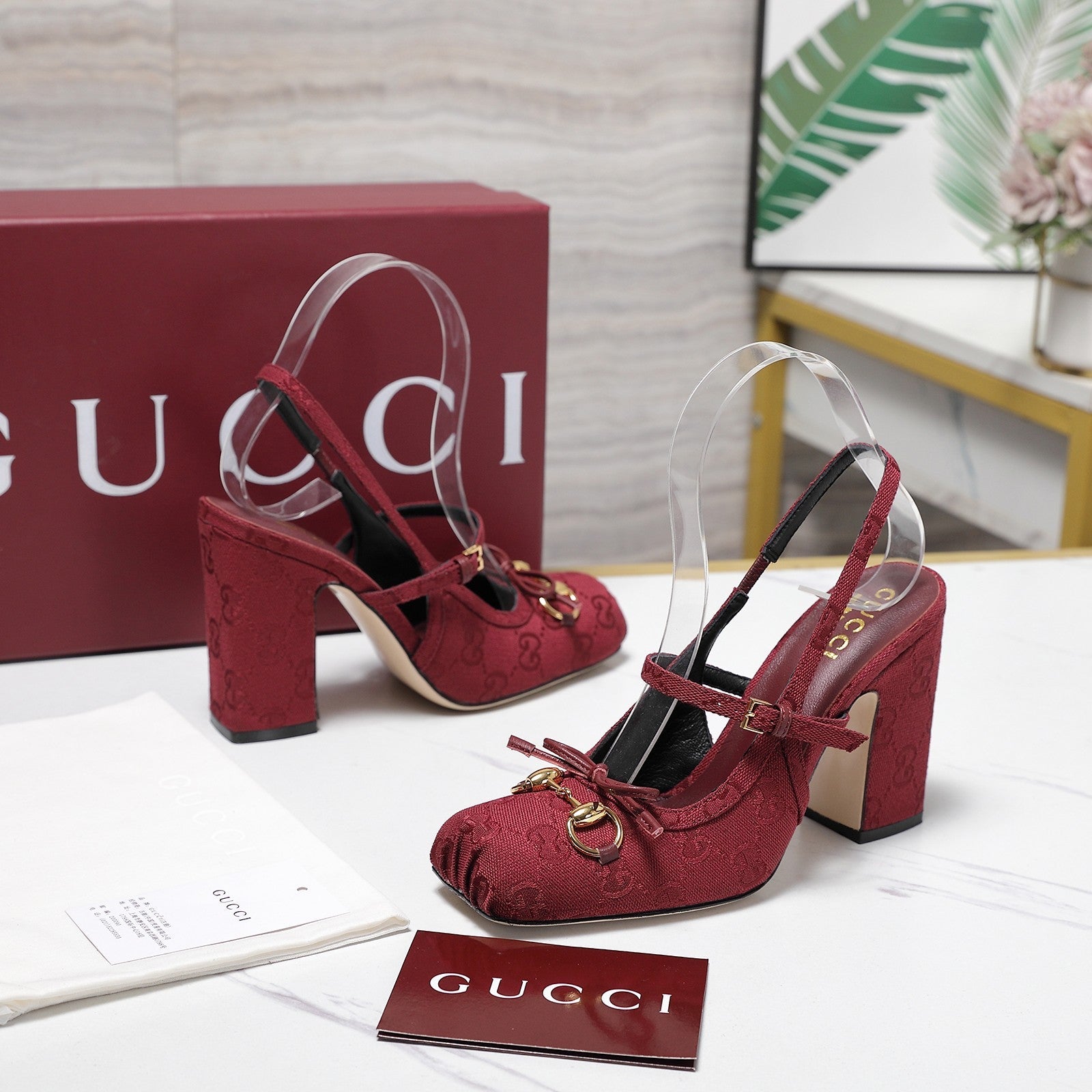 Gucci Horsebit Slingback Pumps 7CM Red Leather 504427