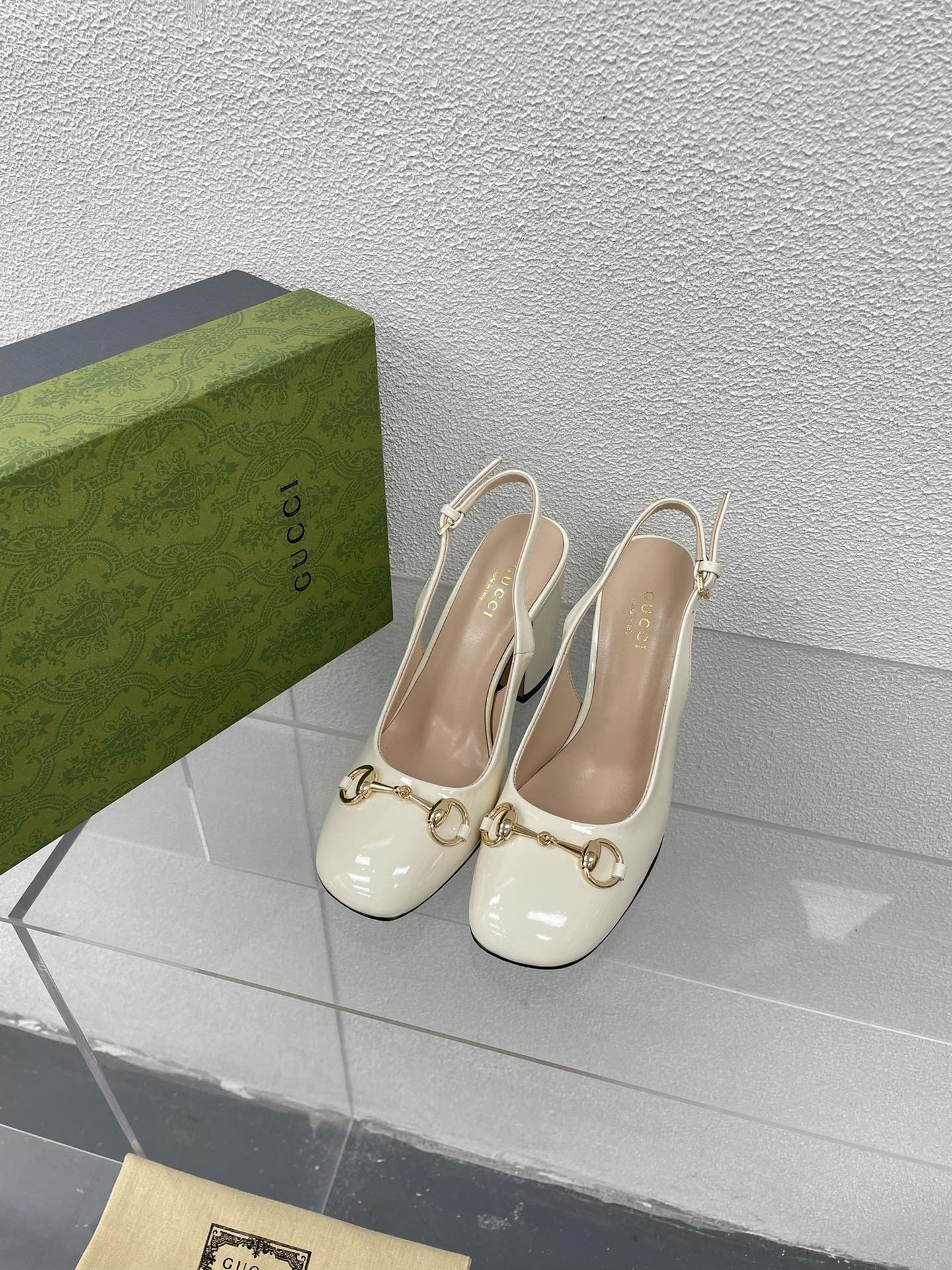 GG WOMEN'S HORSEBIT SLINGBACK 65MM IN WHITE CALFSKIN