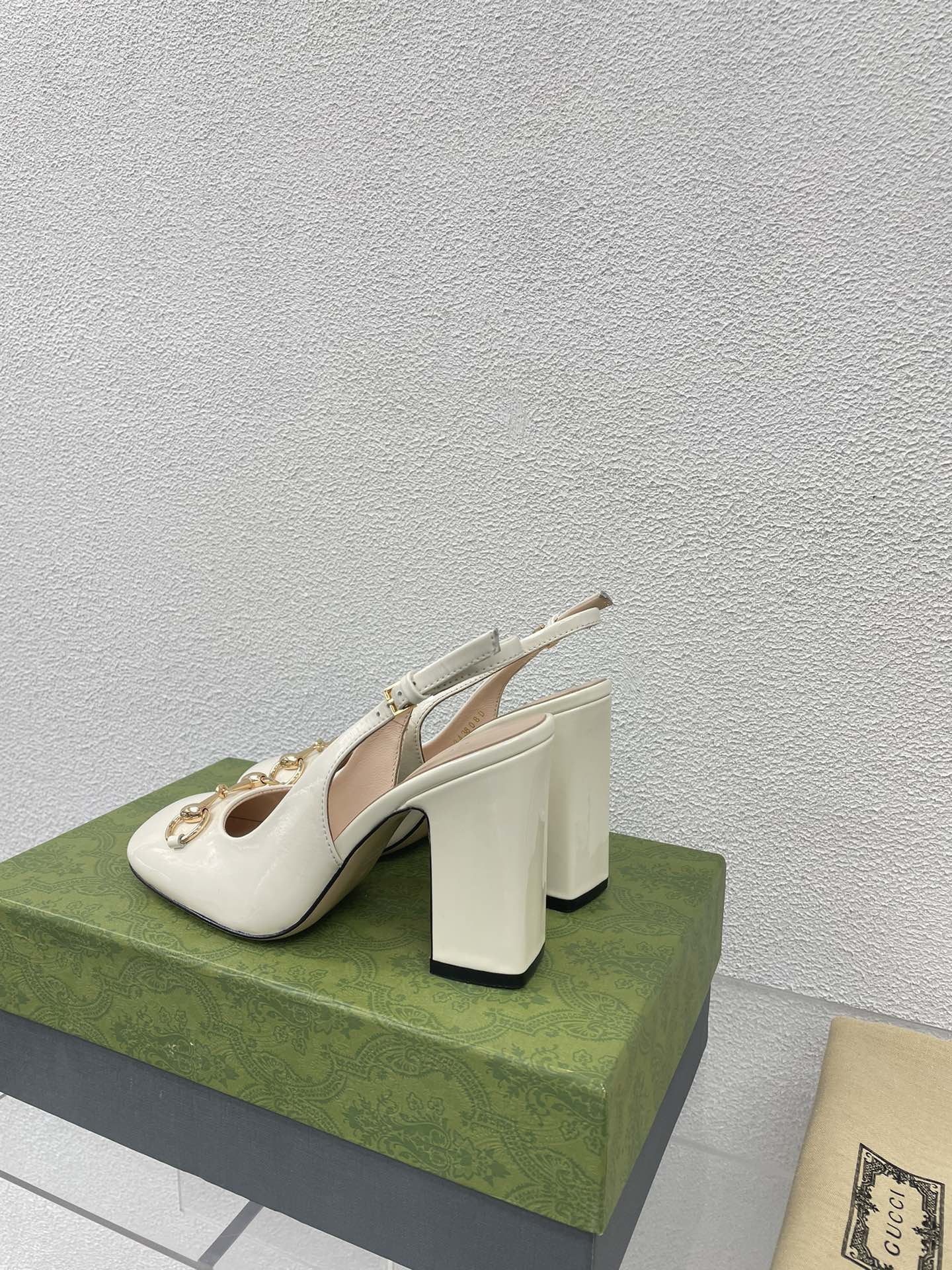 GG WOMEN'S HORSEBIT SLINGBACK 95MM IN WHITE CALFSKIN
