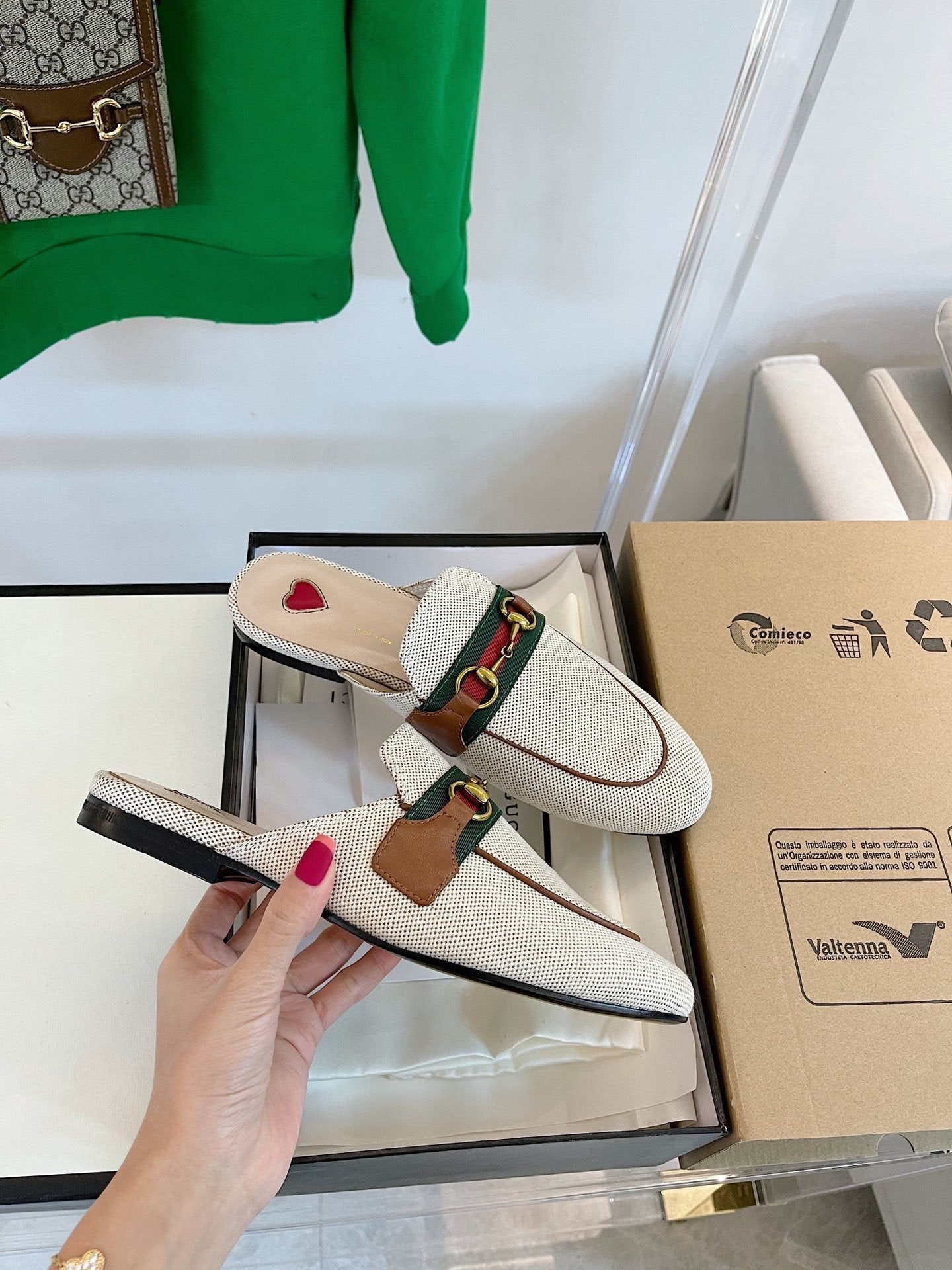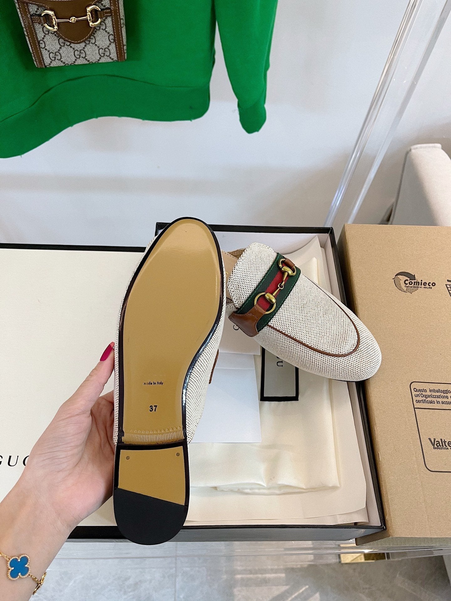 GG BAMBOO BUCKLE FLAT SANDALS WHITE