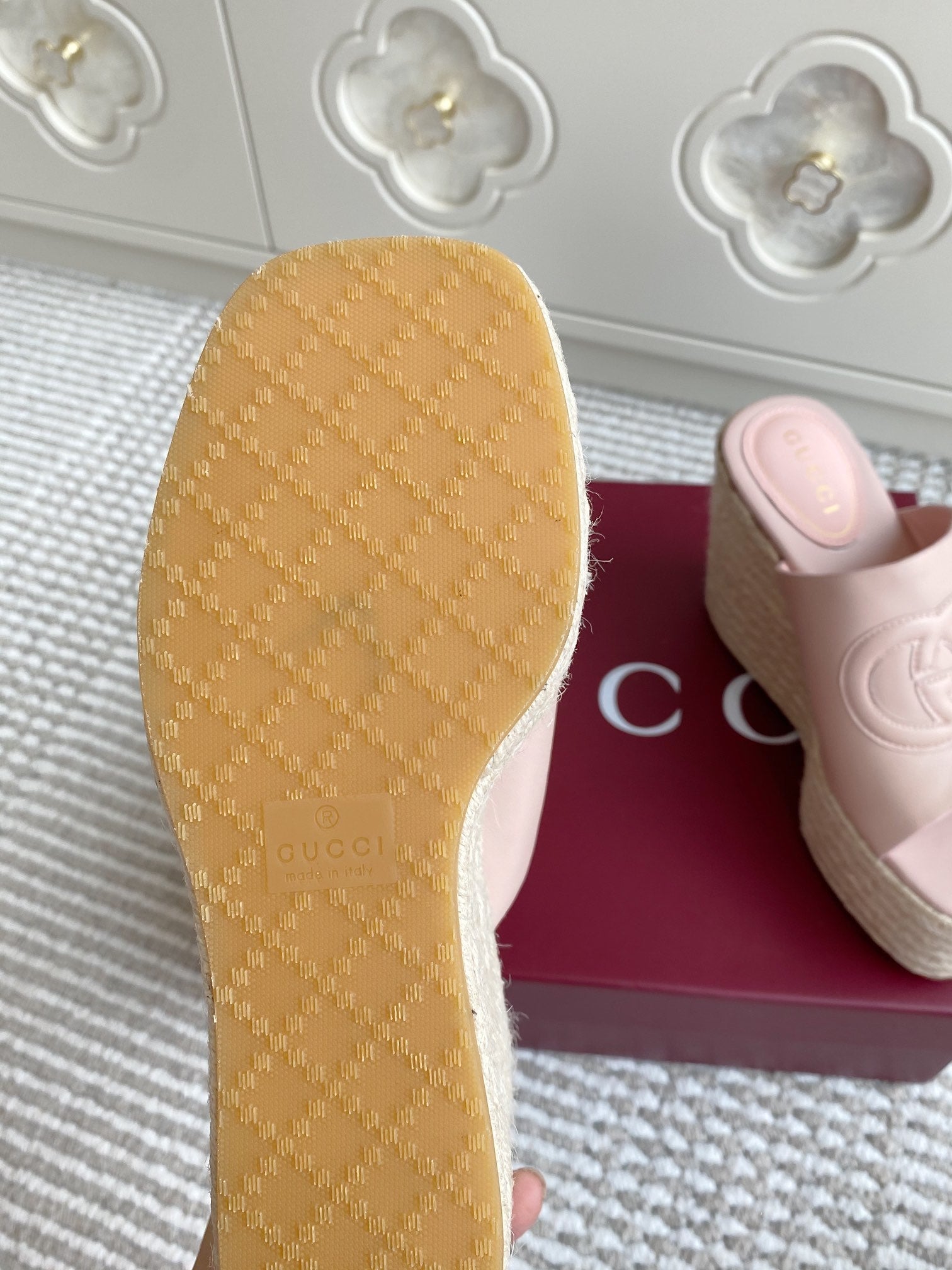 GC 25 Interlocking G Sandal Pink Cord Cowhide 291032