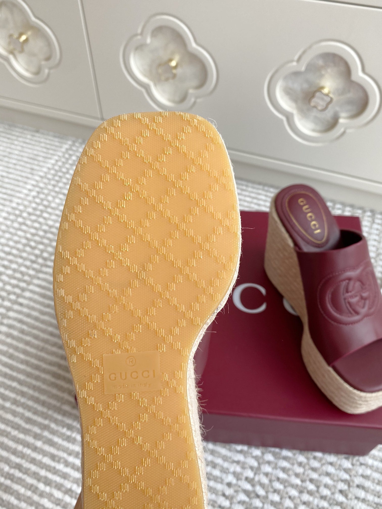 GC 25 Interlocking G Sandal Red Burgundy Cord Cowhide 291033