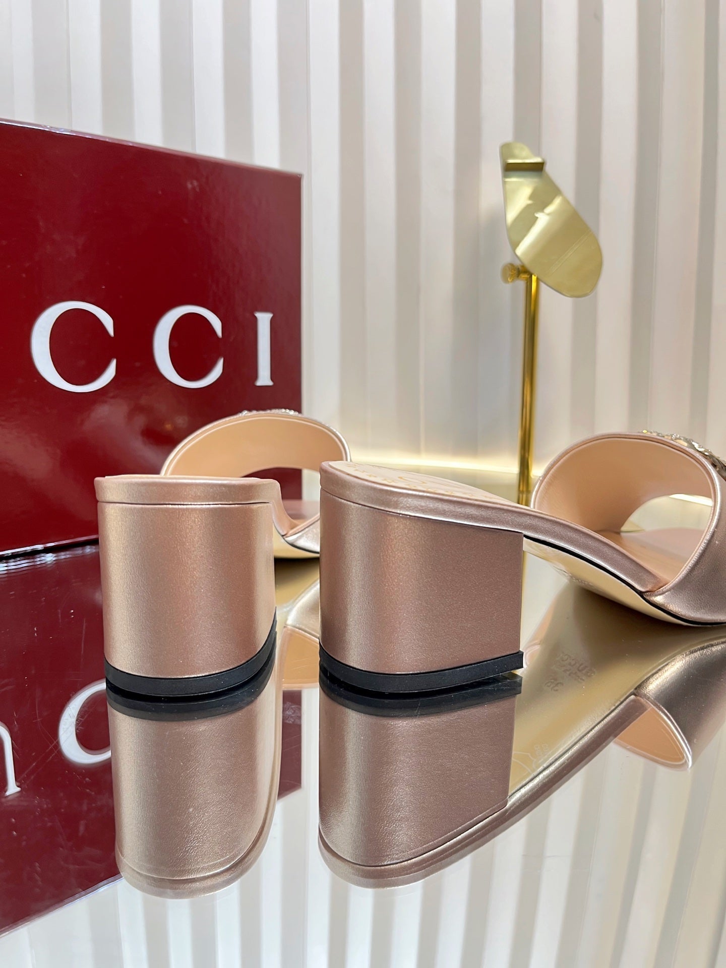GC 25 Interlocking G Heeled Sandal Gold Patent Leather 294639