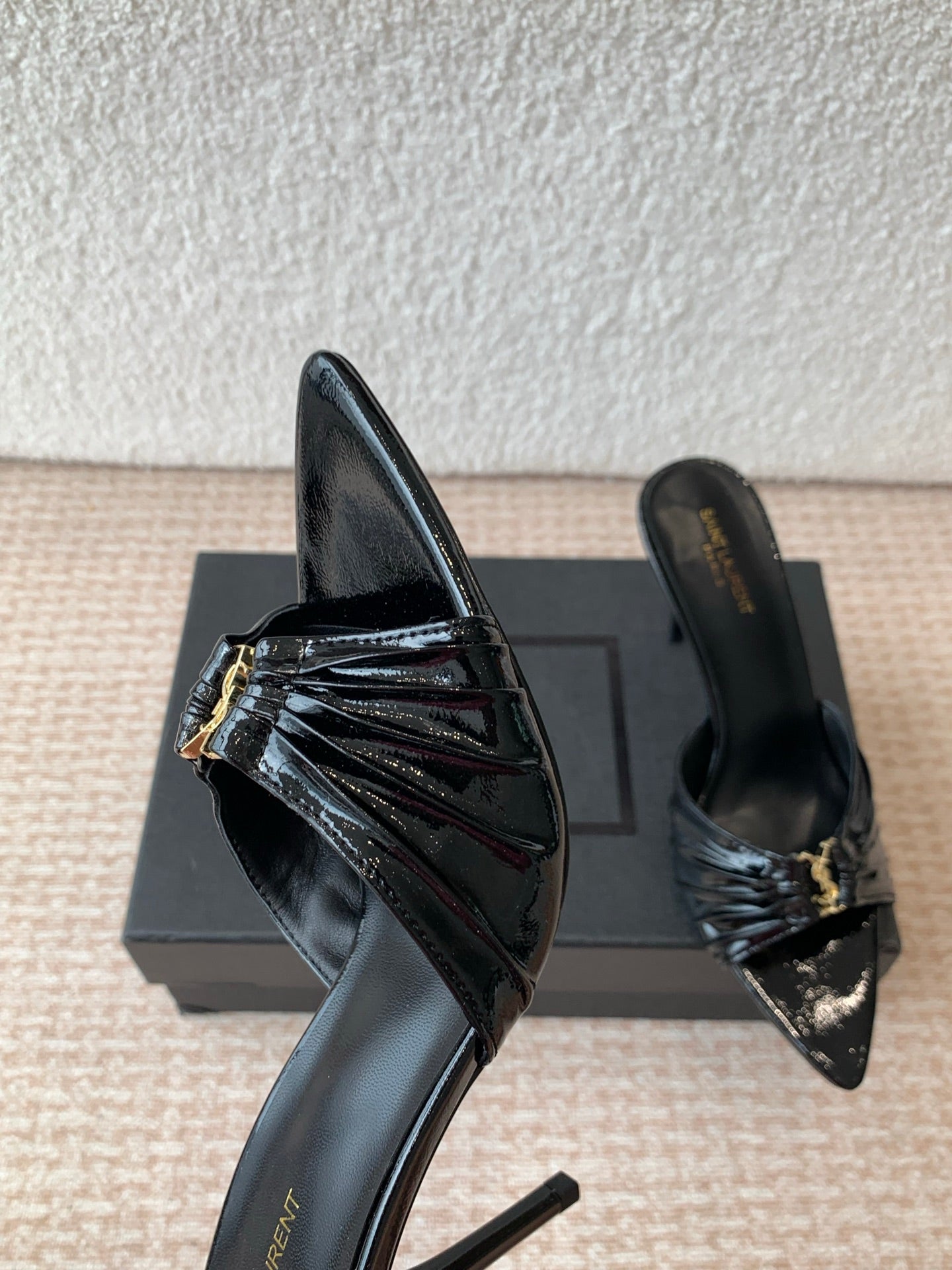 SL Babylone Sandal Heeled 10cm Black Patent Calfskin