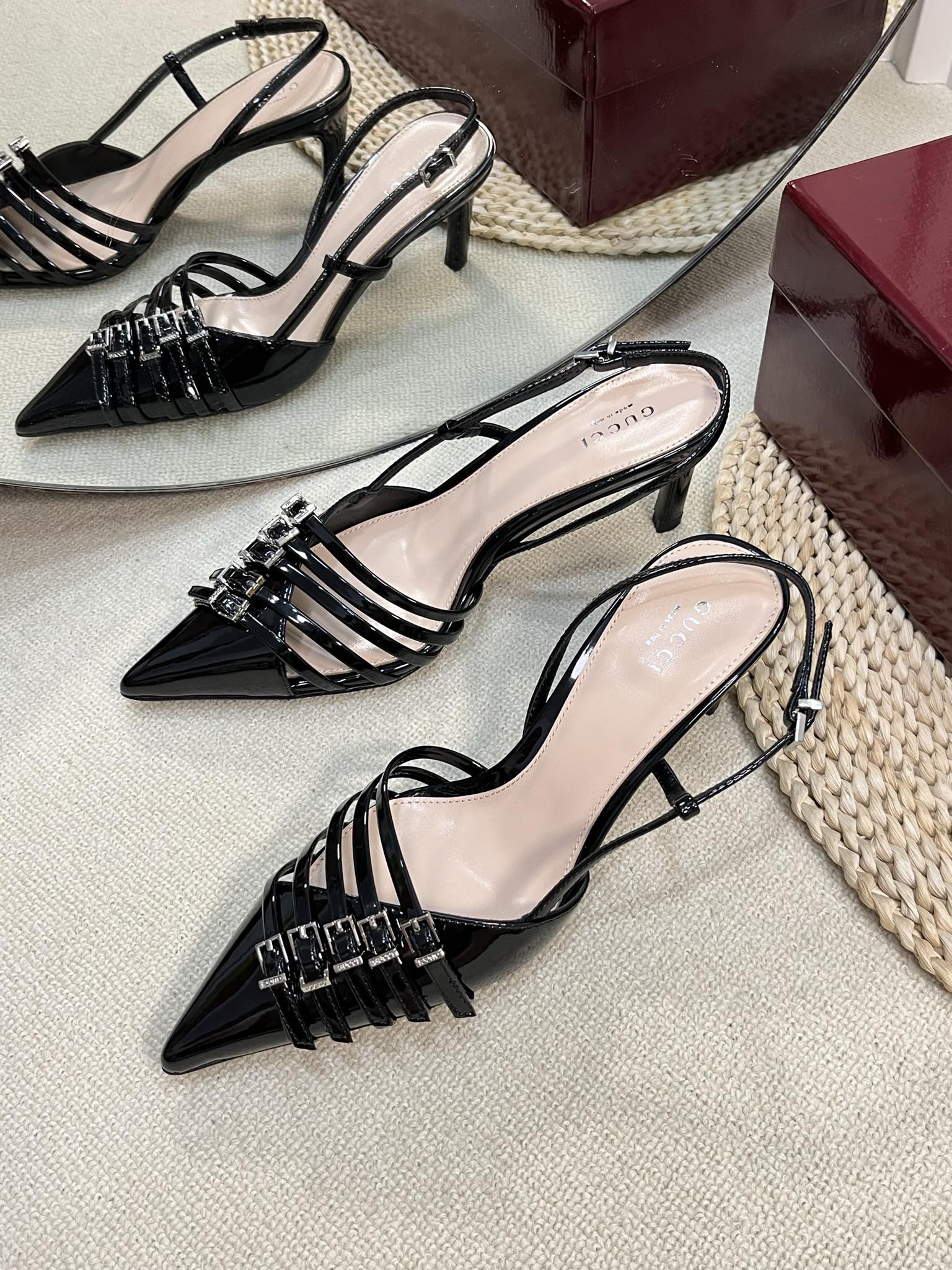 GC Horsebit Slingback with Crystal 95mm Black Patent Leather 294598
