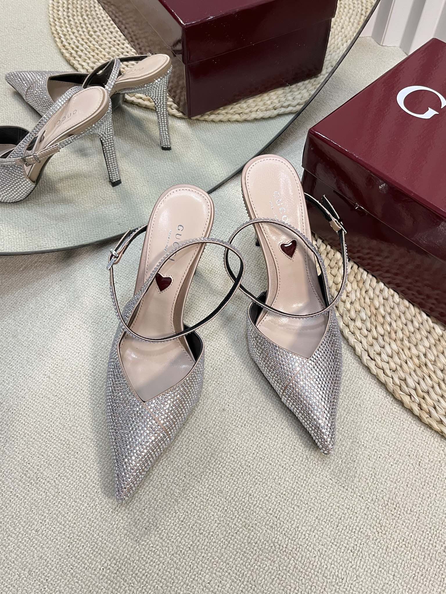 GC Crystal-Embellished Slingbacks Silver Silk Sheepskin 294610