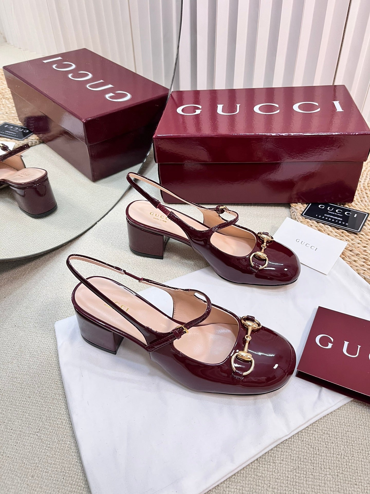 GC Horsebit Slingback 60mm Rosso Ancora red Patent Leather 294589
