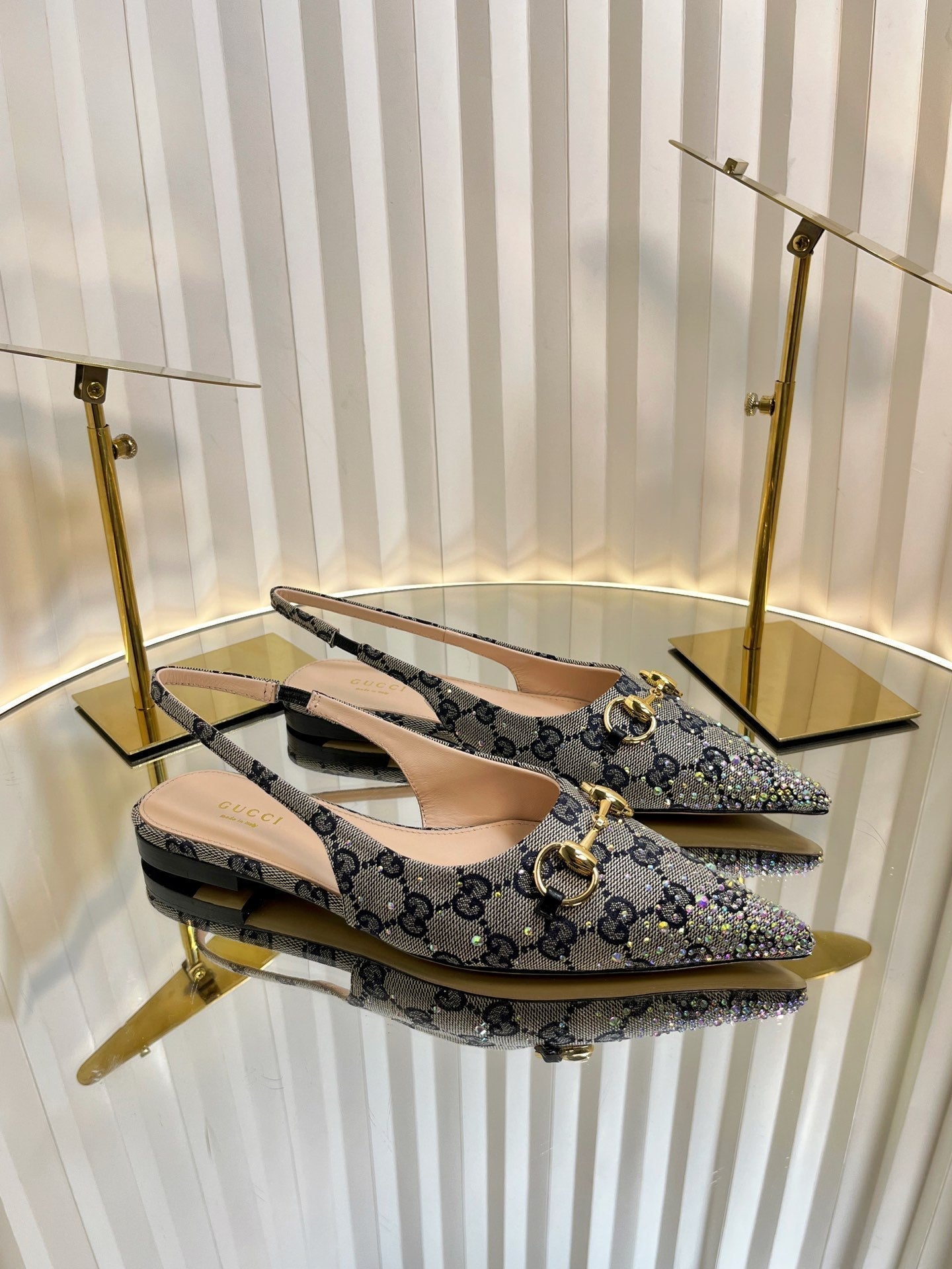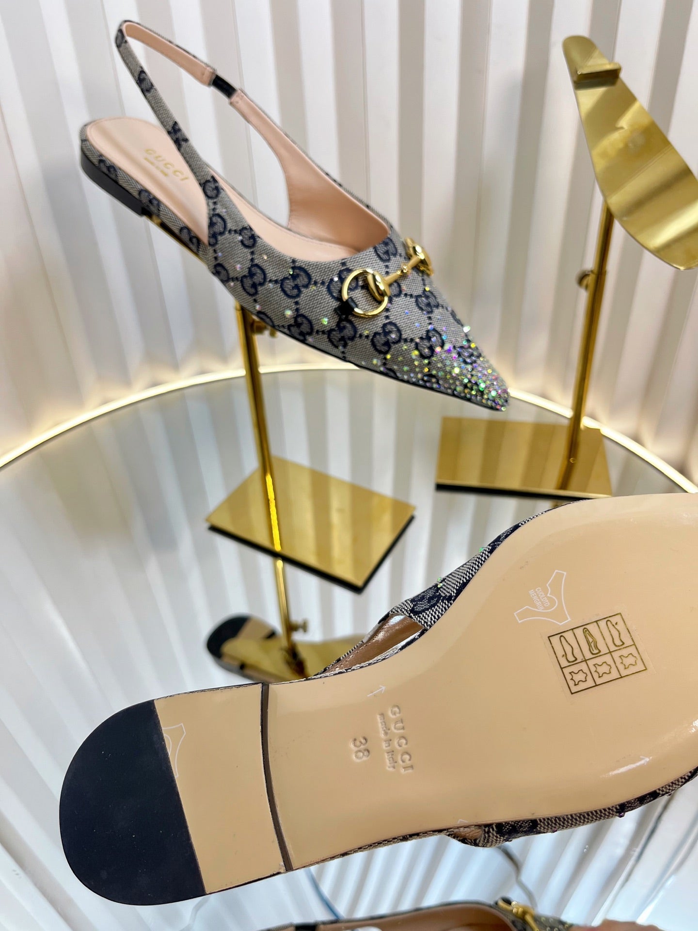 GC Crystal Horsebit Slingback 10mm Beige mix Ebony Canvas lambskin 294614