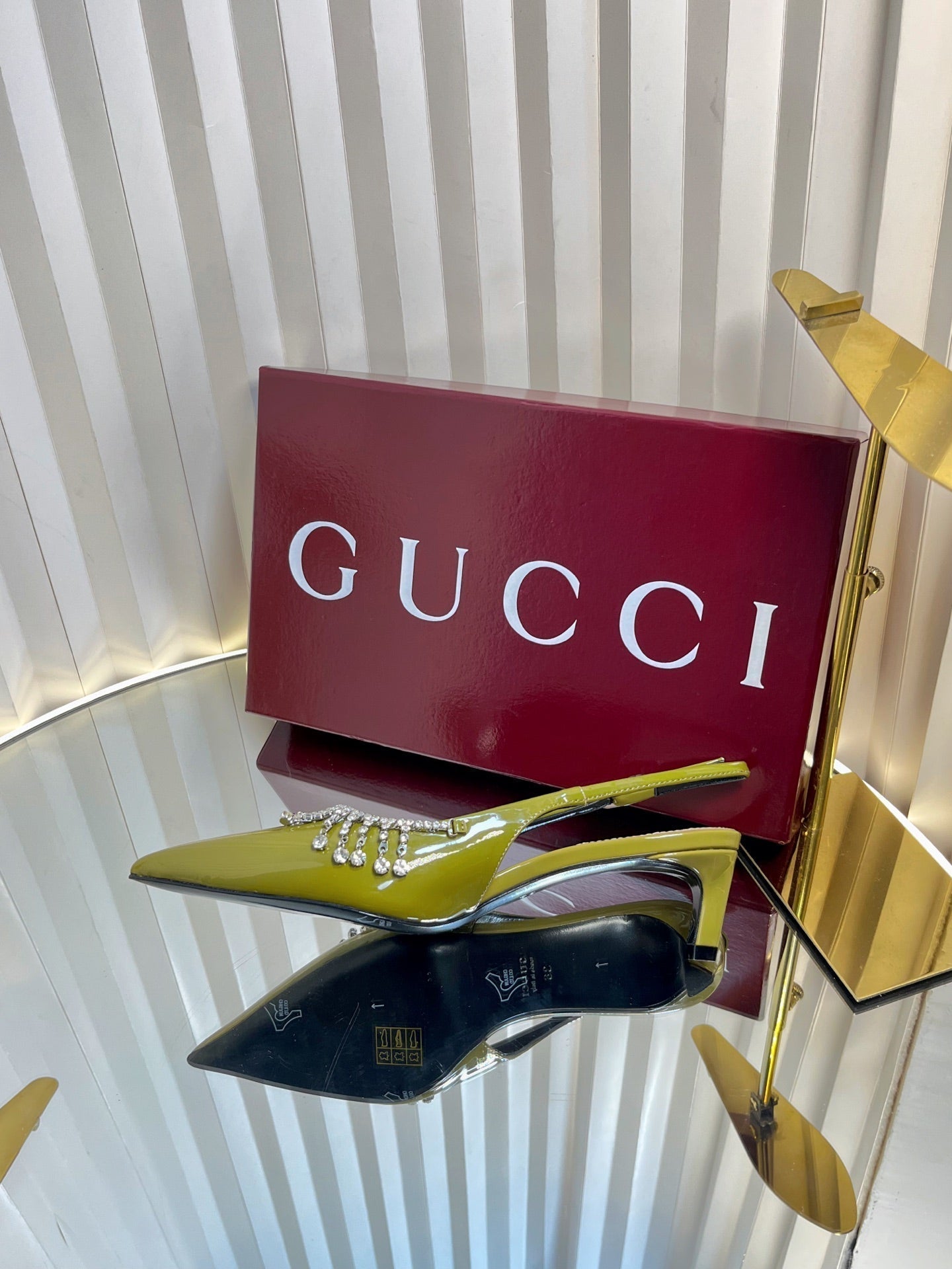 GC Embellished Slingback Acid Green Patent Leather 294622