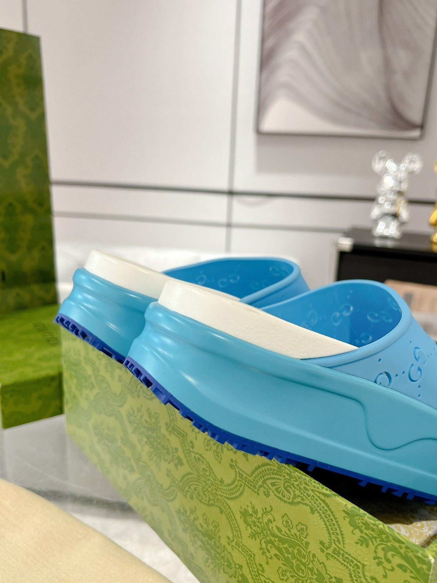 GC 25 50mm Monogram Slide Sandal Sky Blue White Cowhide 292392