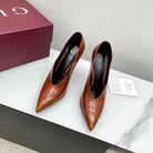 GG 25Ss Crocodile Pattern Pointed Toe High Heels Caramel Leather 511497