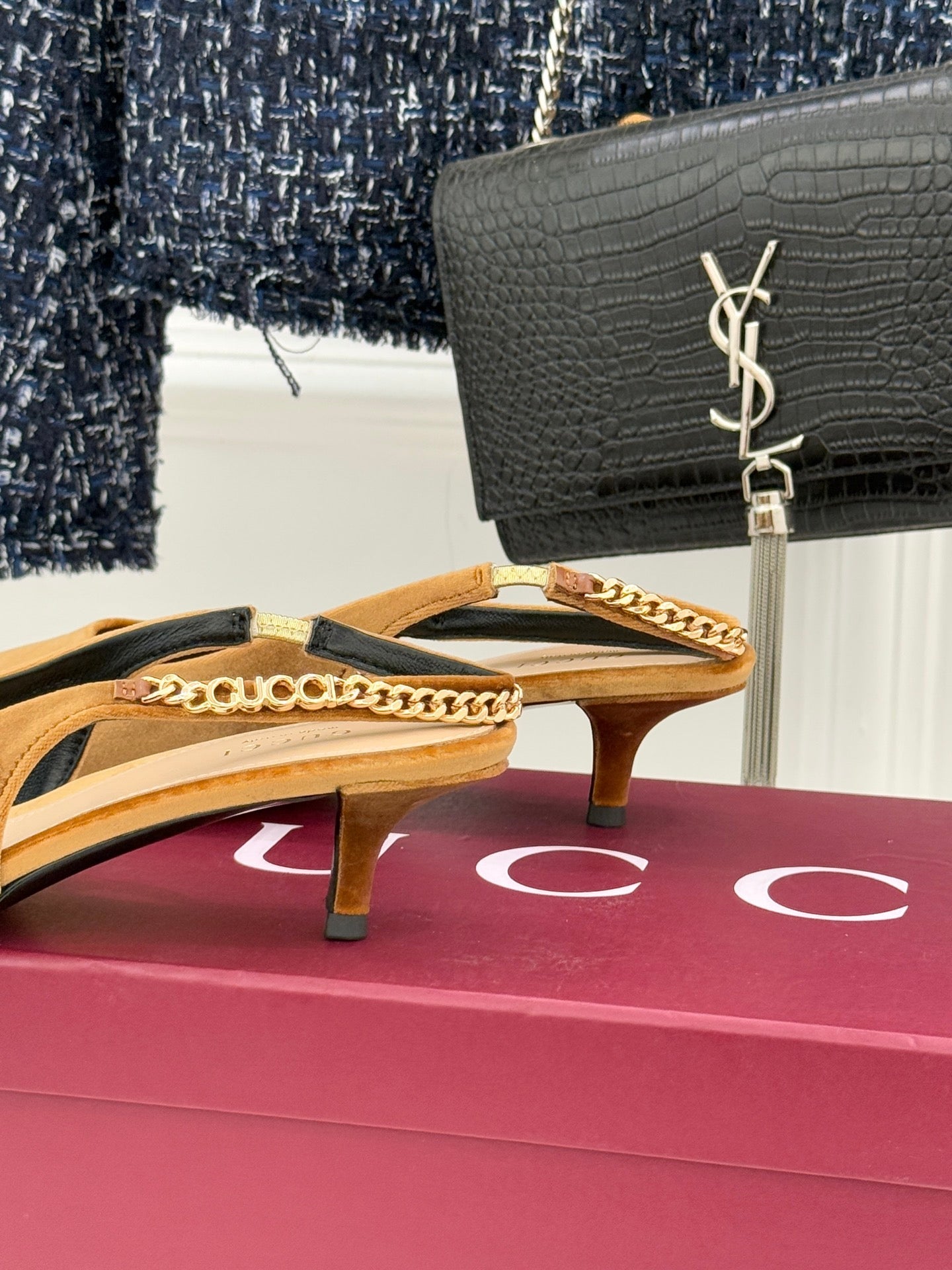 GG 26 Signoria Slingback Pumps 4.5cm Brown Wood Suede 632523