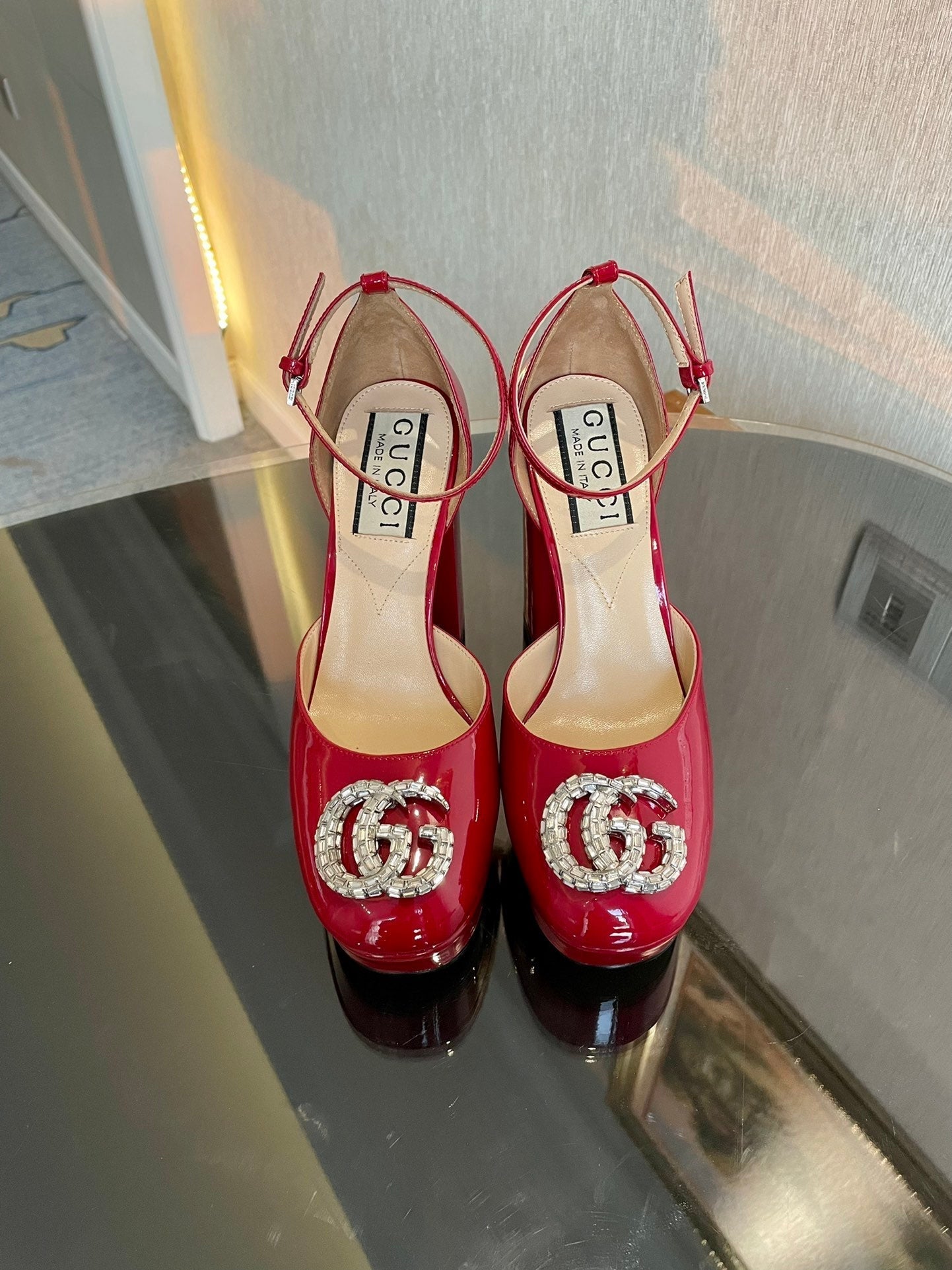 GG SLINGBACK HIGH HEEL PUMP CHERRY VELVET