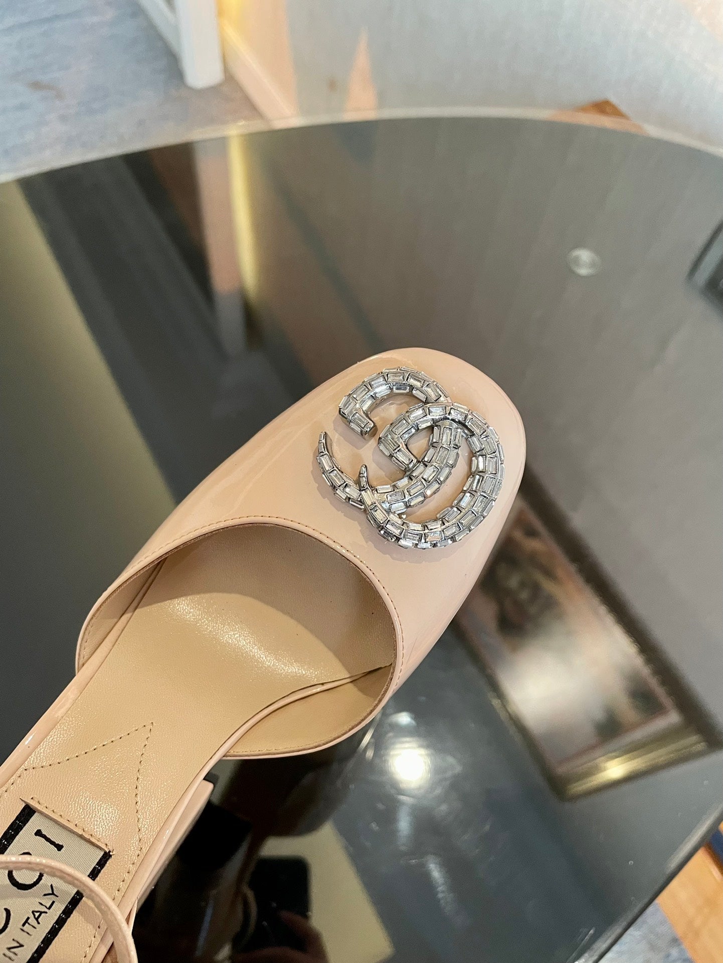 GG Horsebit Slingback 100MM Beige Pink Monogram Canvas Point Toe Crystal-Embellished