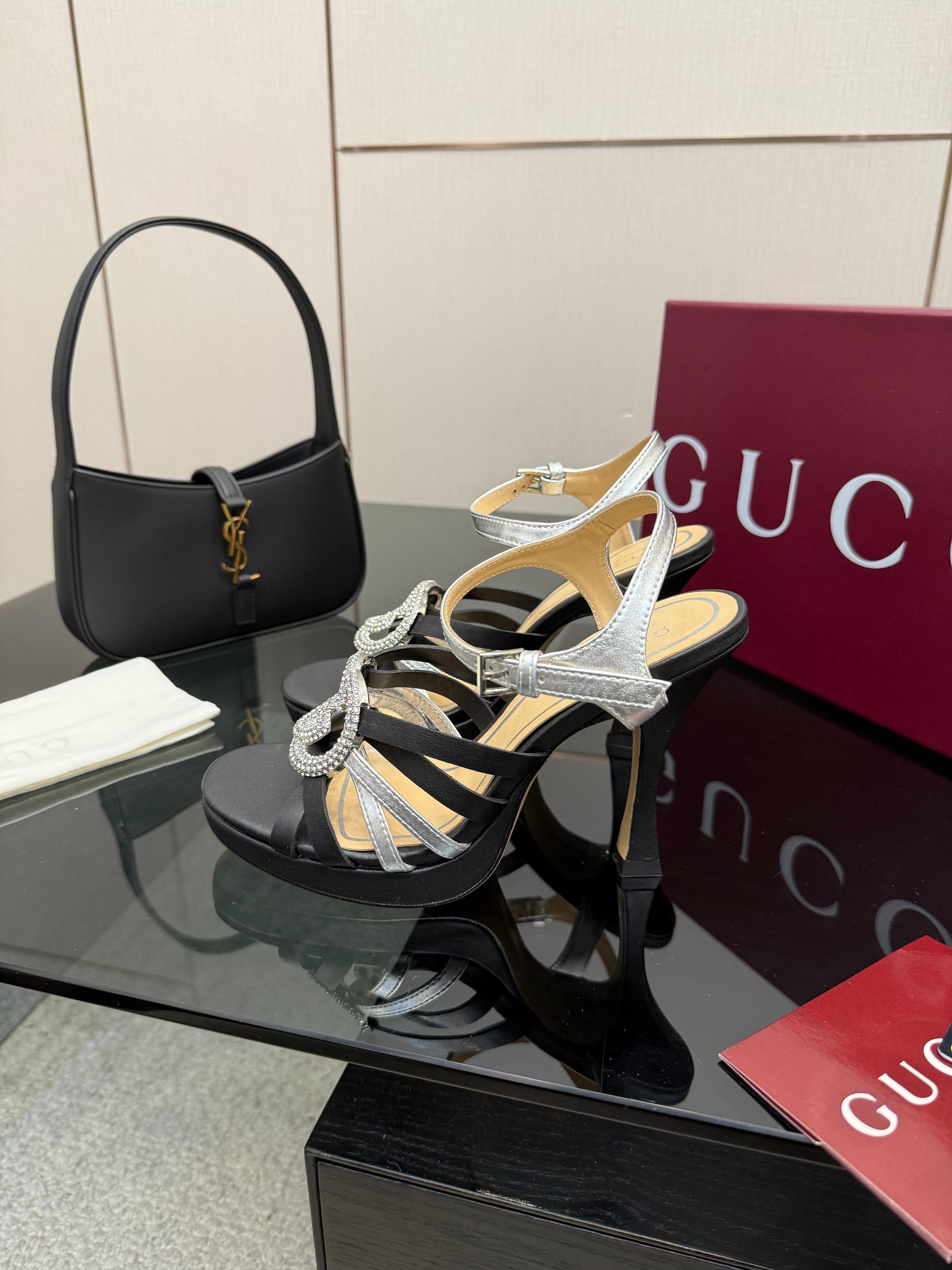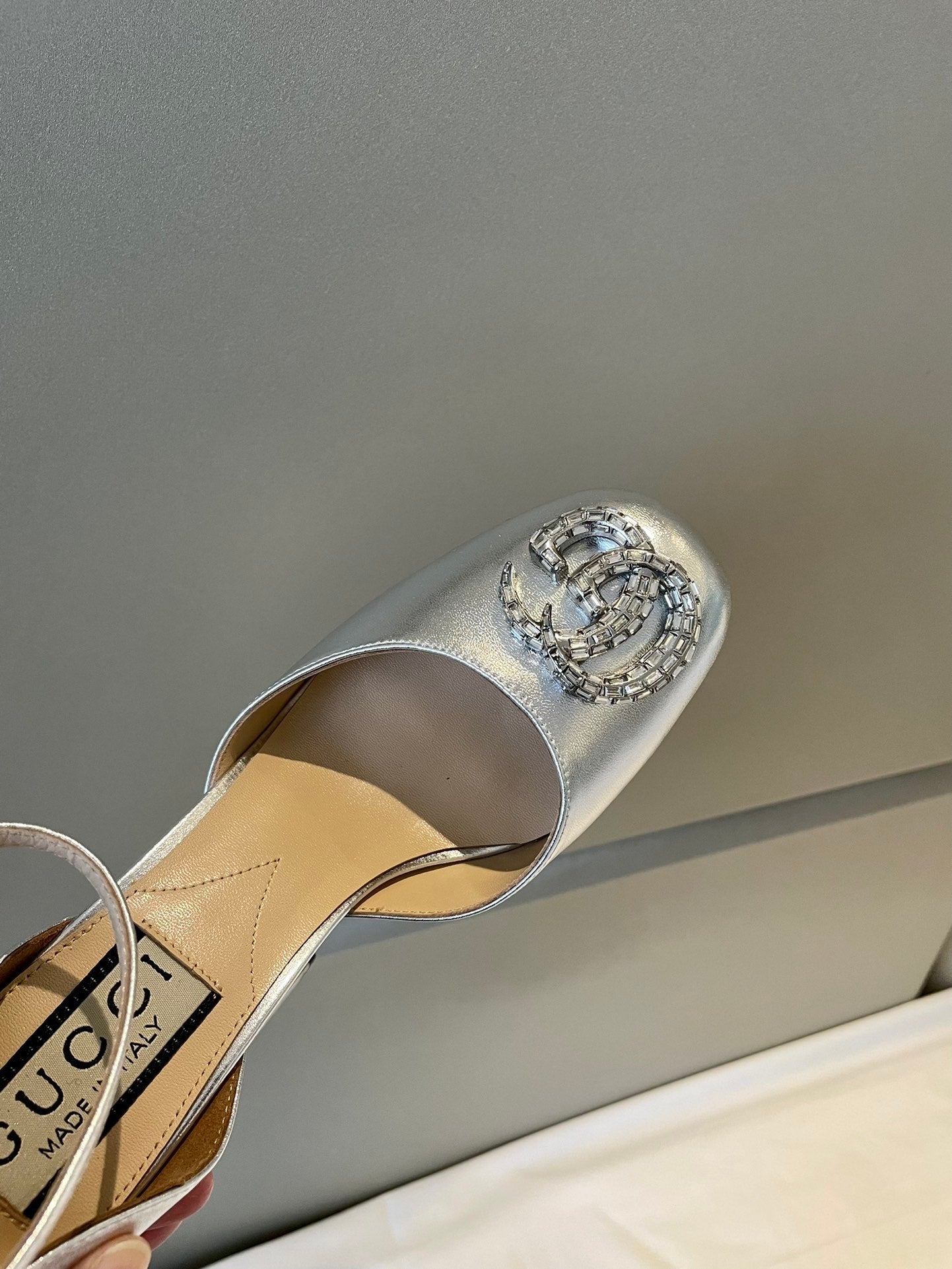 GG 26 High-Heeled 85 Pumps Sliver Metallic Cowhide 587079