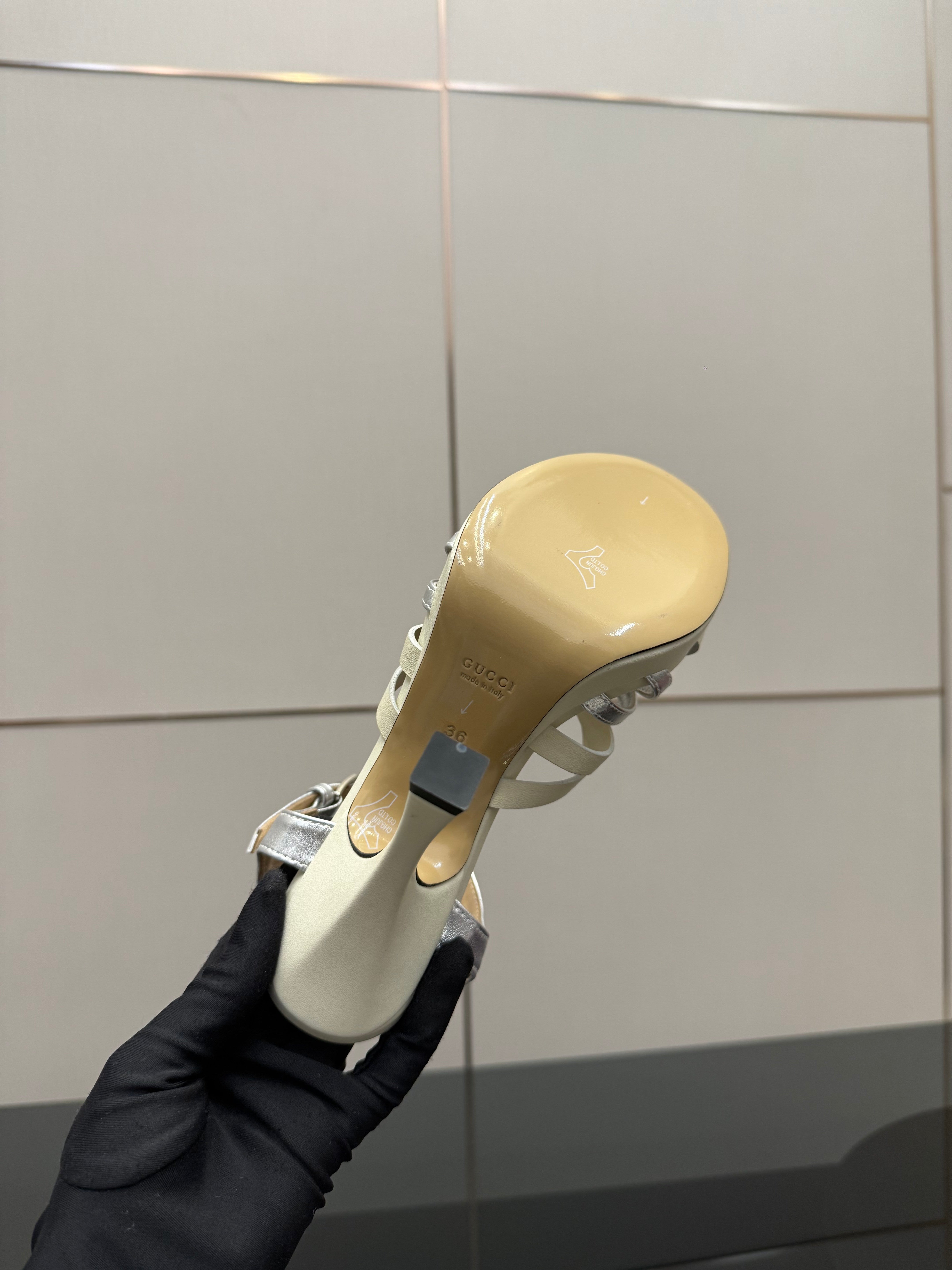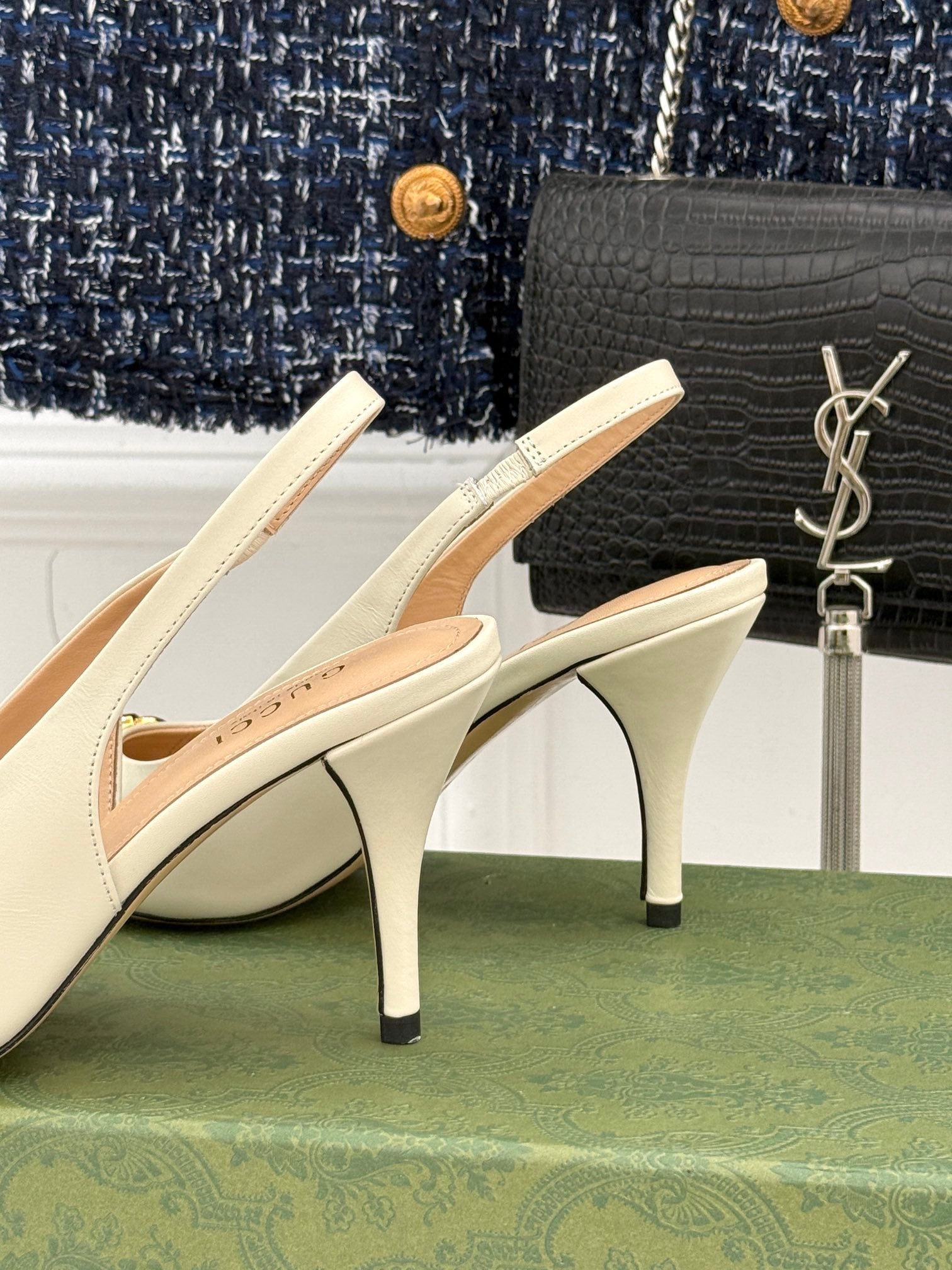 GG SLINGBACK HIGH HEEL PUMP CREAM CALFSKIN