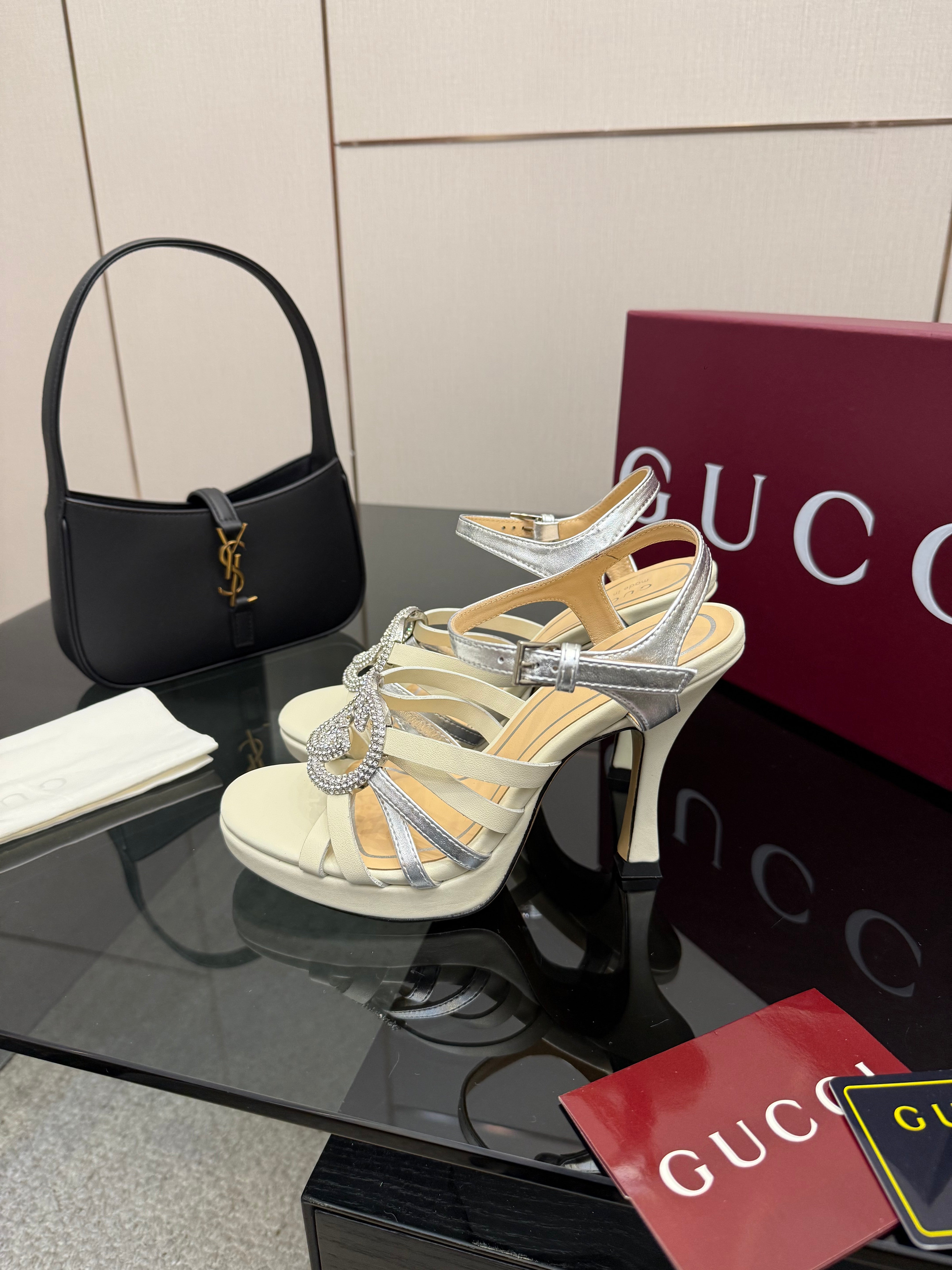 GG Pump 10.5cm With Crystal Interlocking G Ivory Sliver Leather