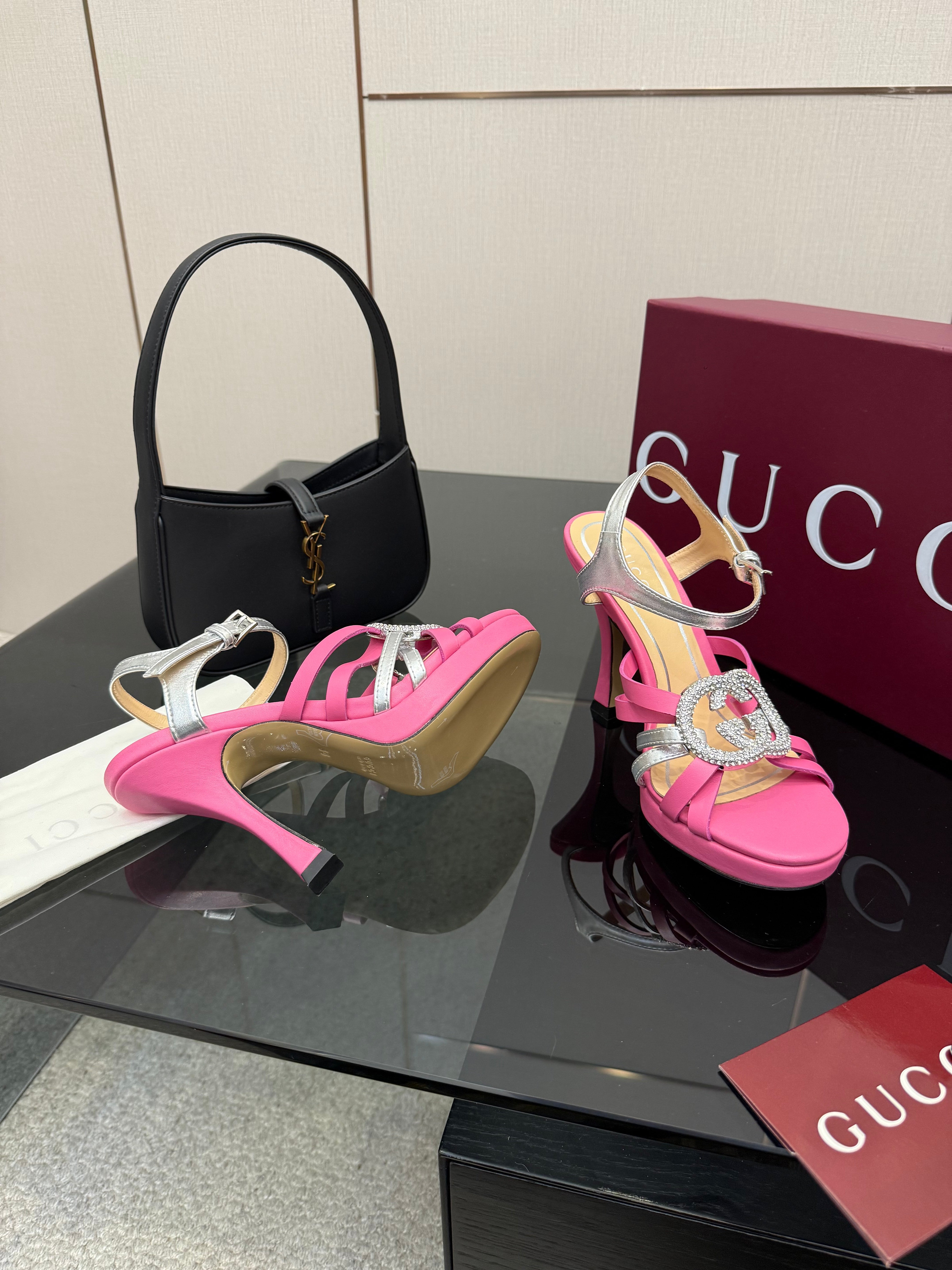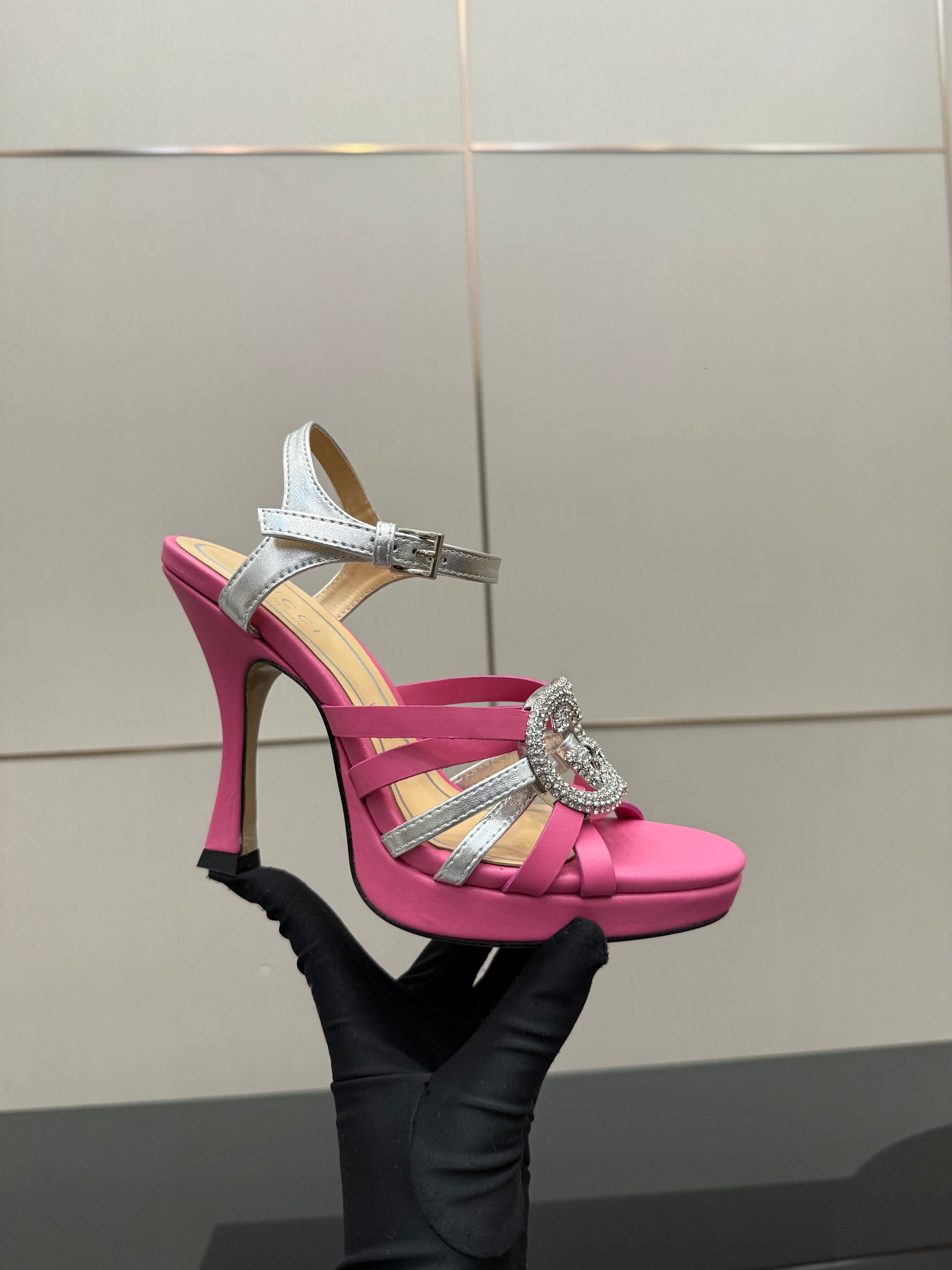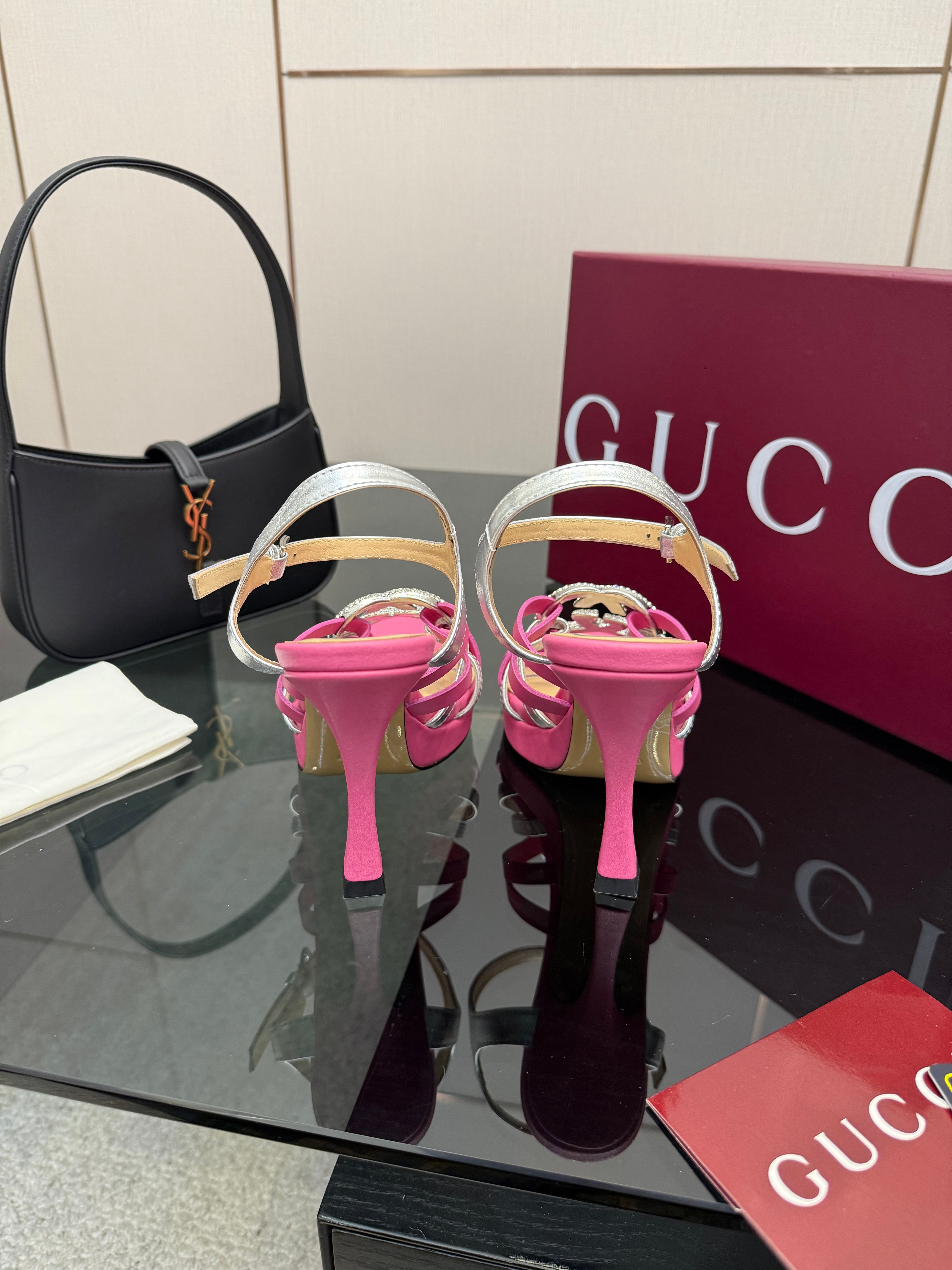 GG Pump 10.5cm With Crystal Interlocking G Pink Sliver Leather