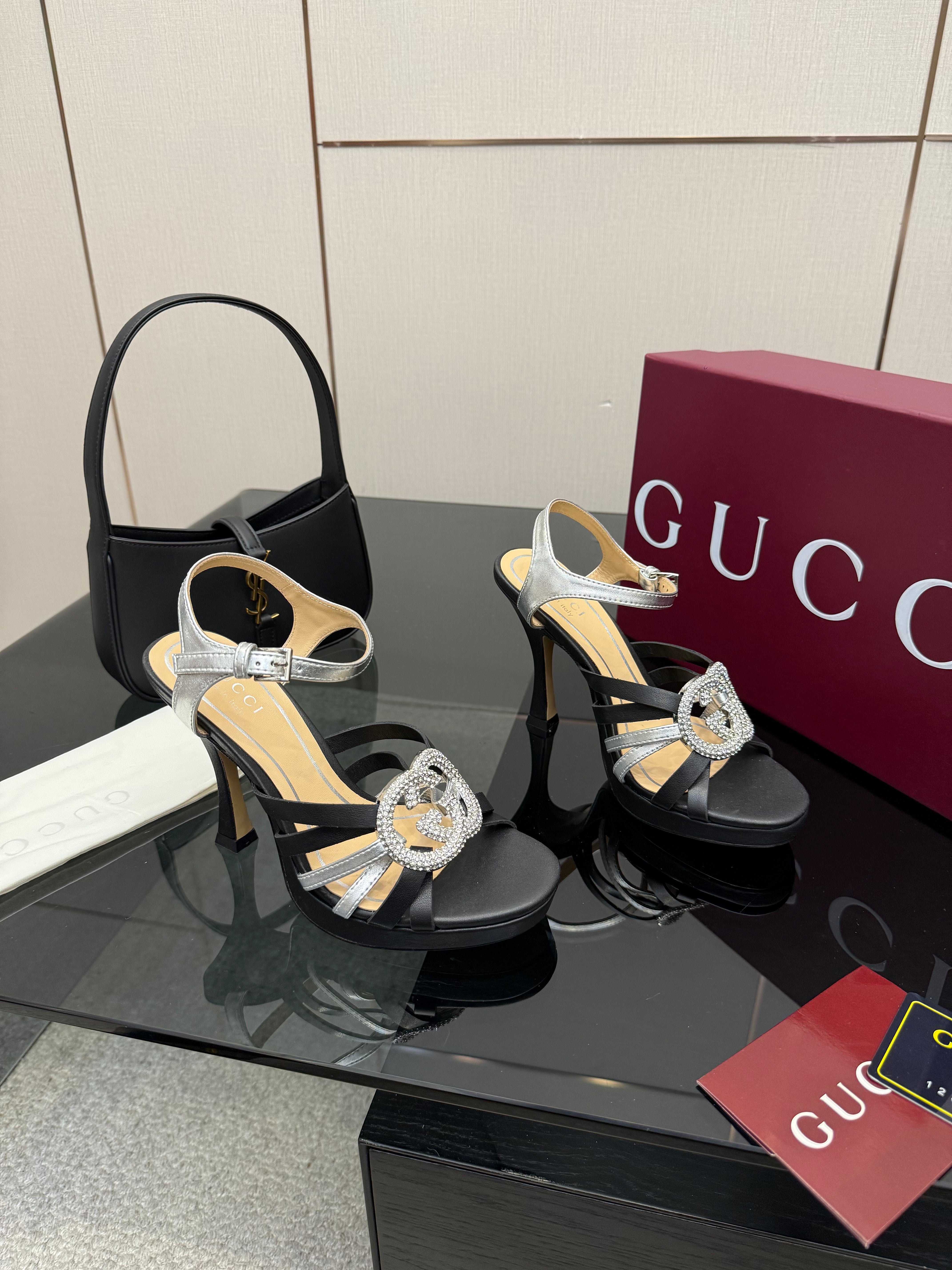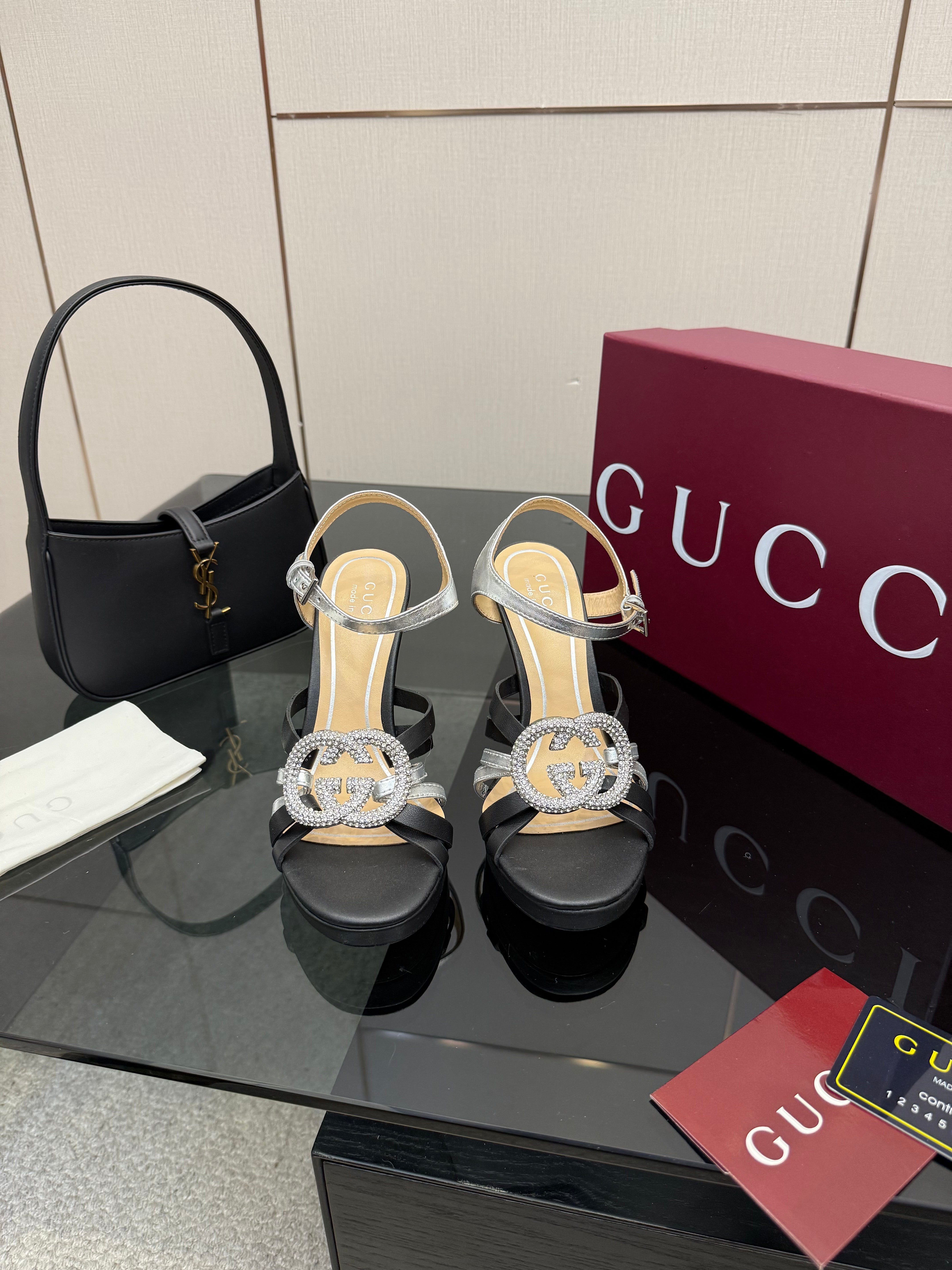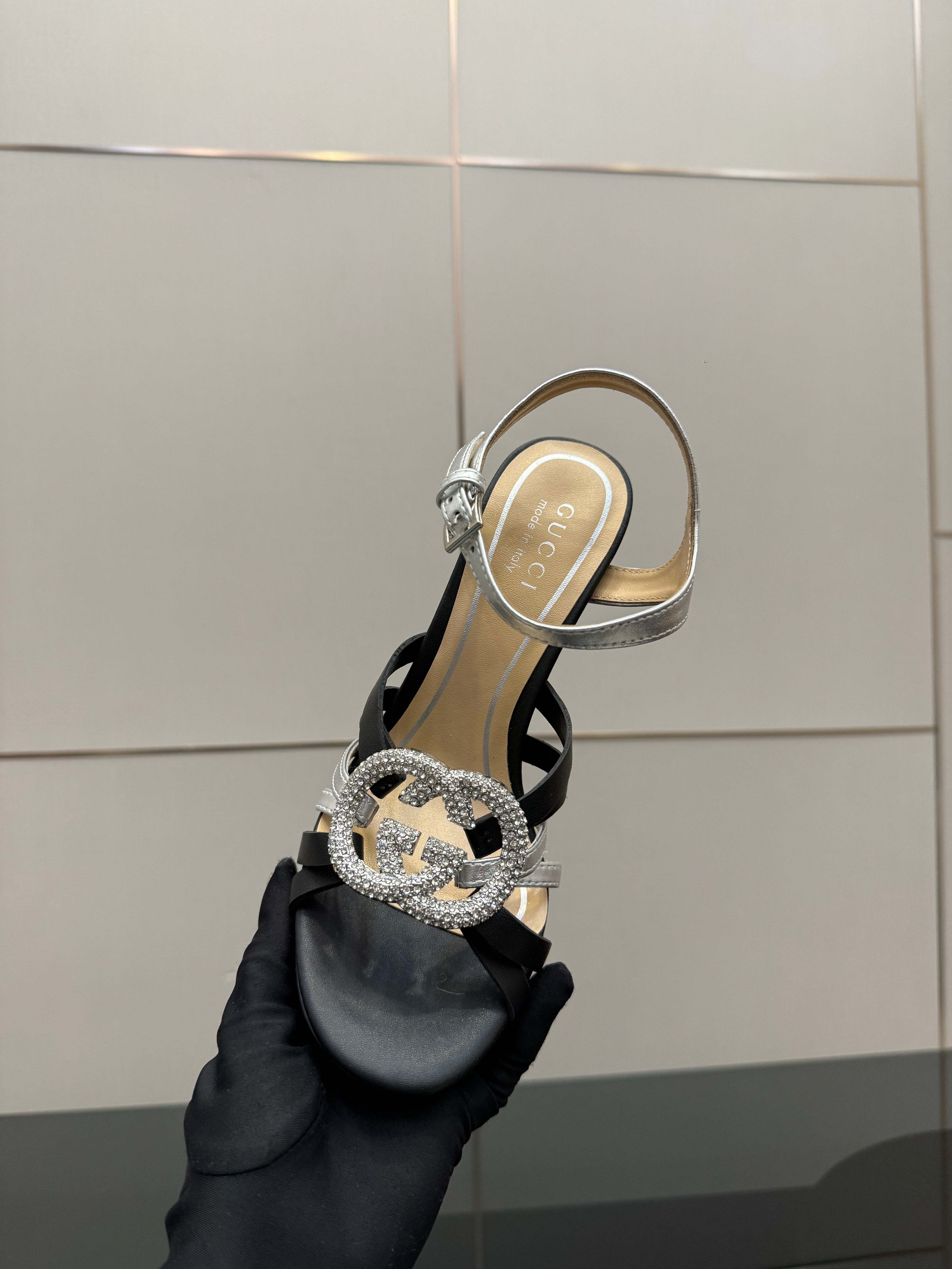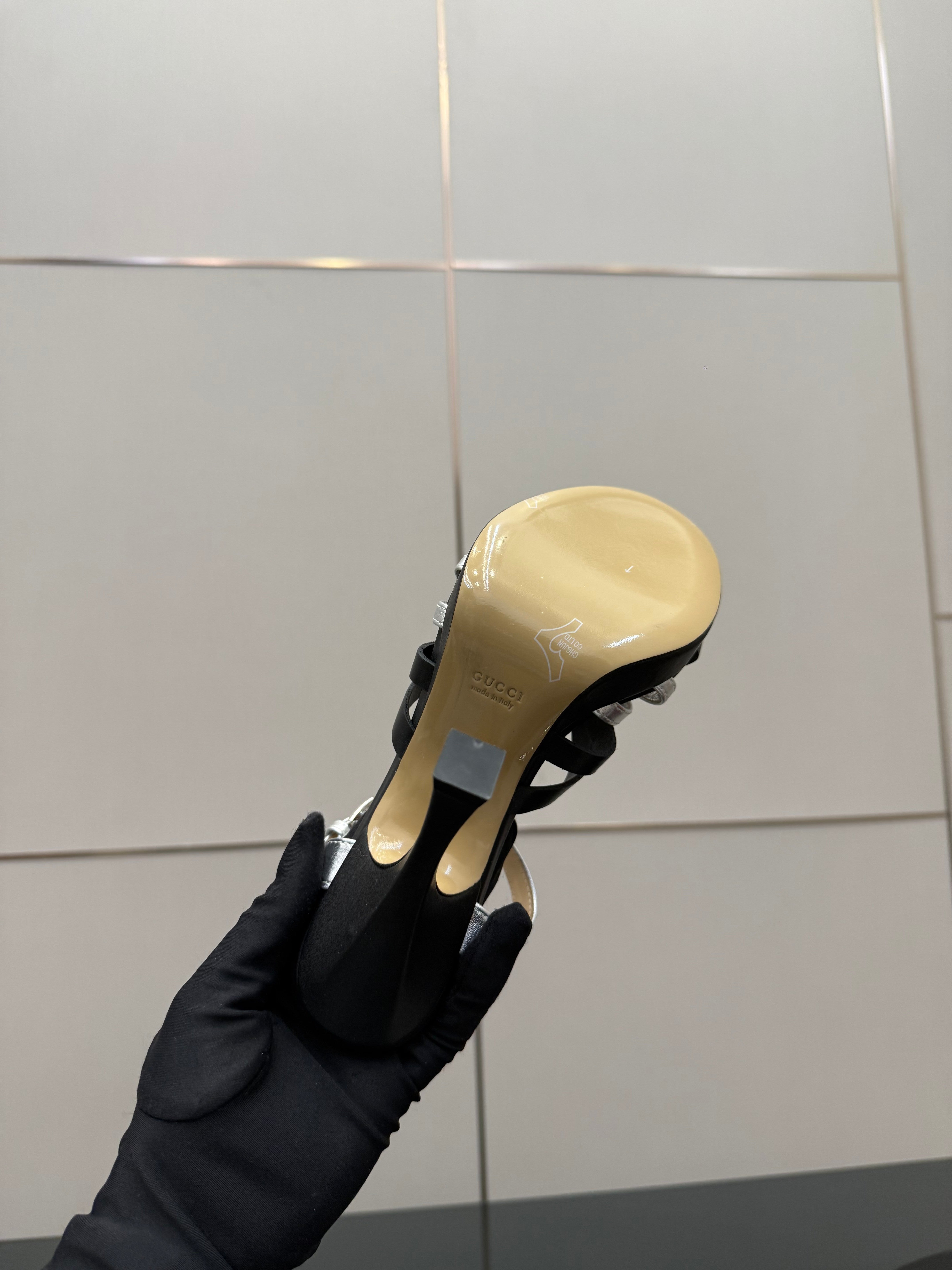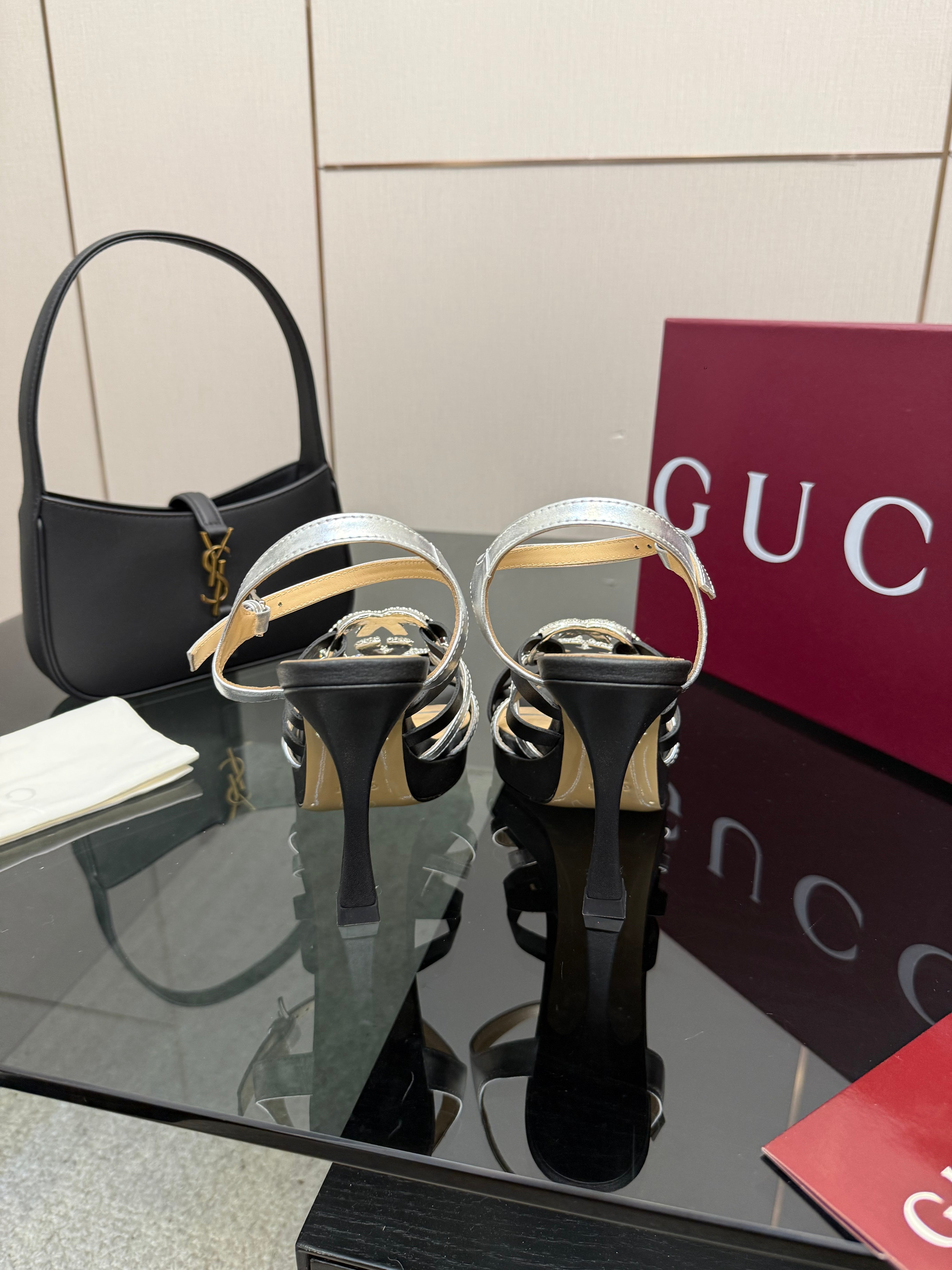 GG Pump 10.5cm With Crystal Interlocking G Black Sliver Leather