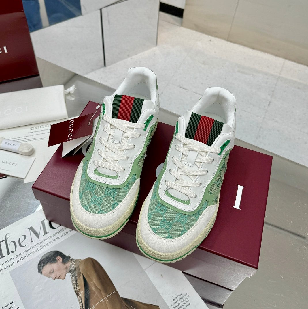 GG Re-Web Sneakers Light Green White Suede Cowhide Fabric 564720