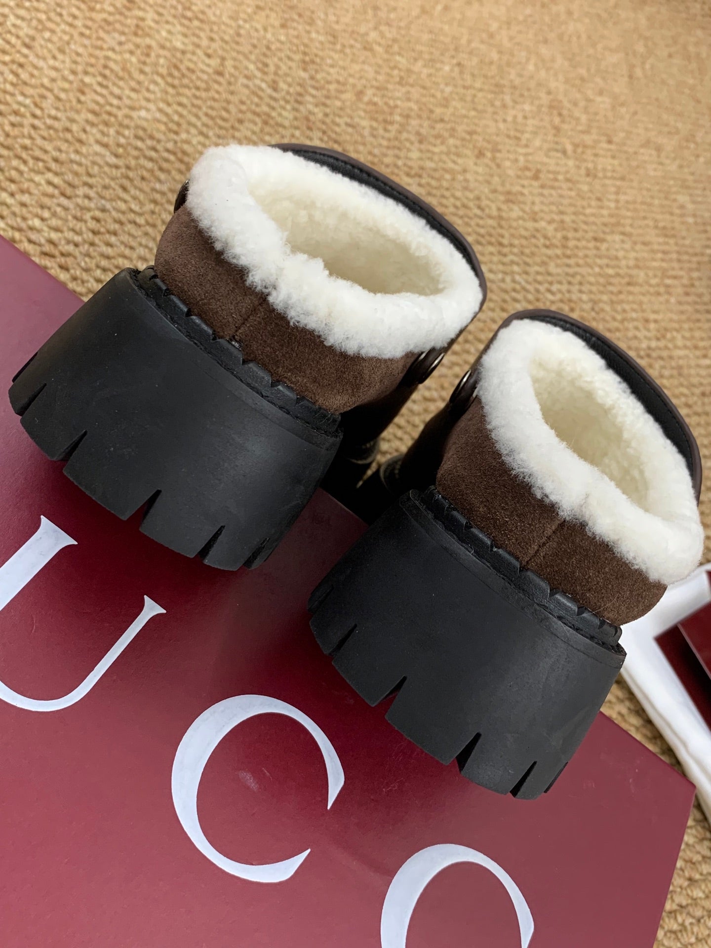 Gucci FW 25 Horsebit Suede Clog Brown Suede with Shearling 506448