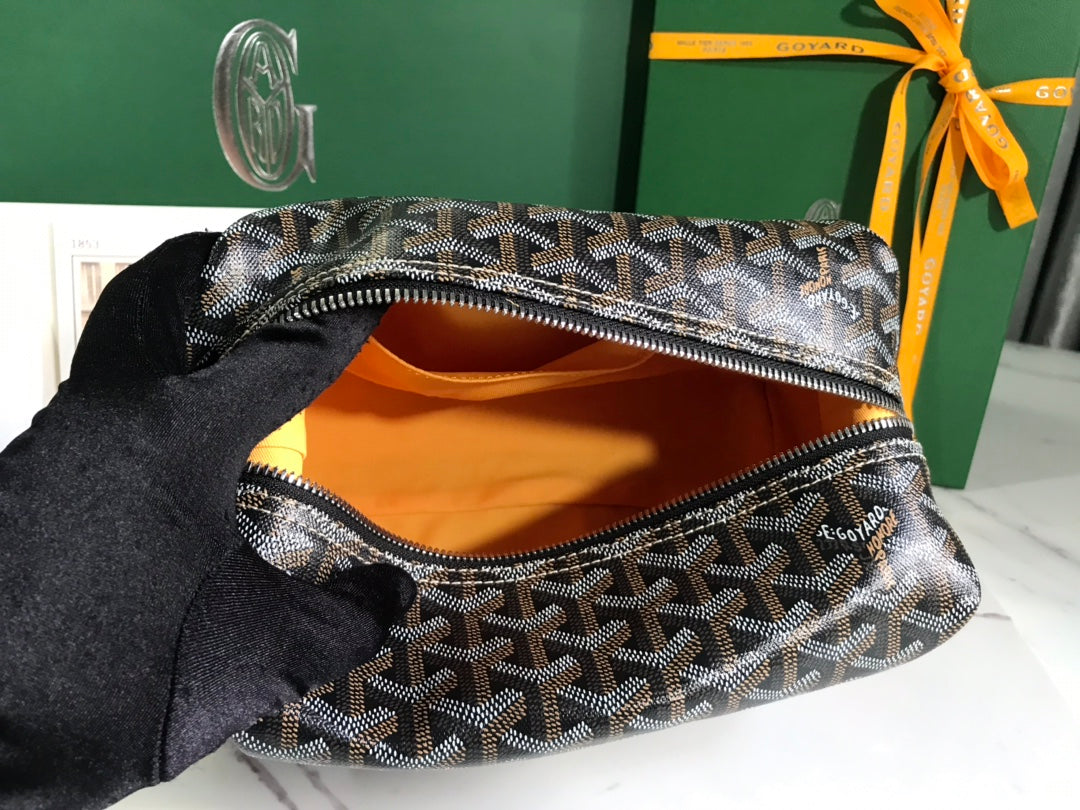 Goyard Bowling 25 Toiletry Bag Black Tan Canvas & Calfskin