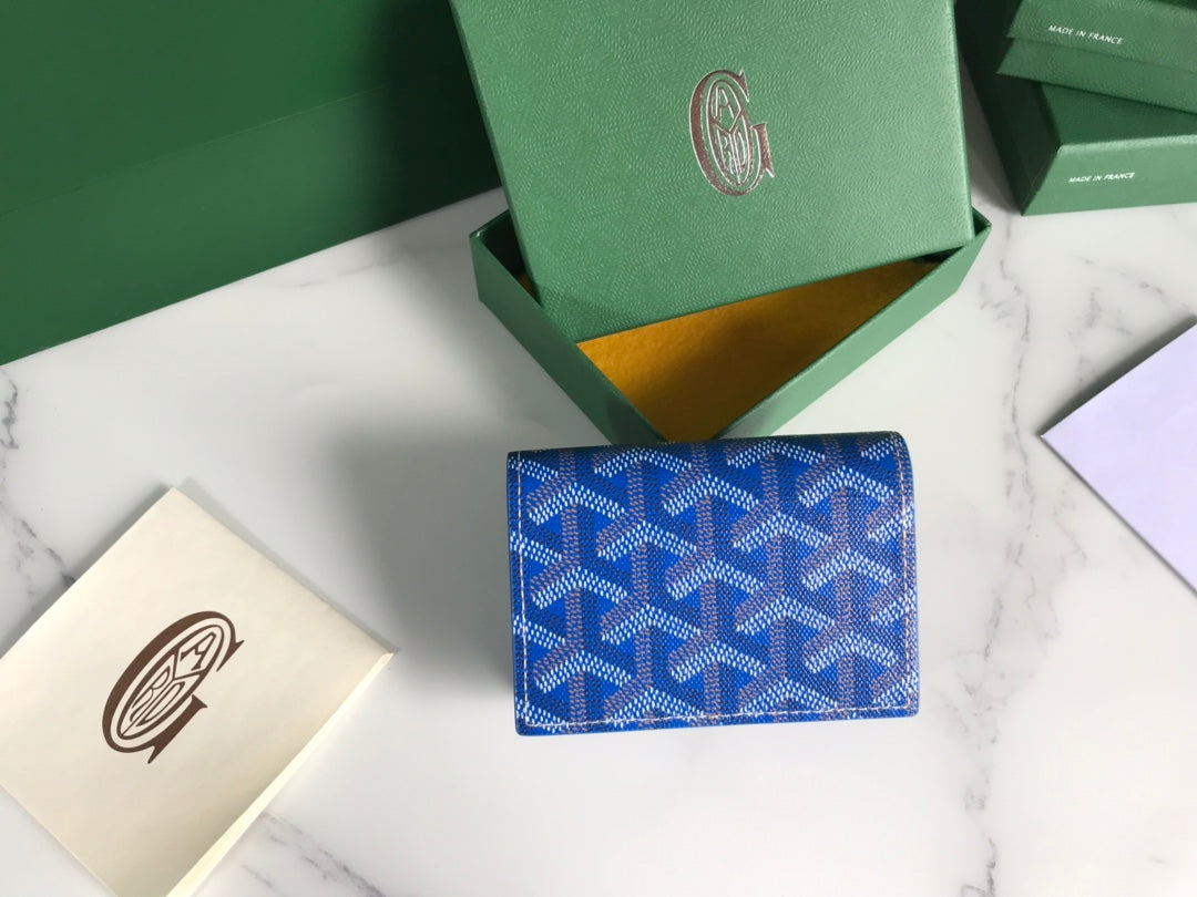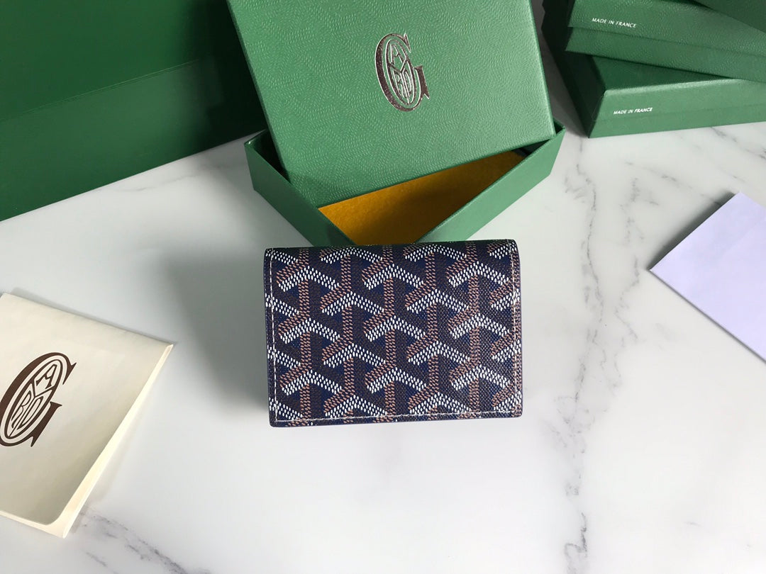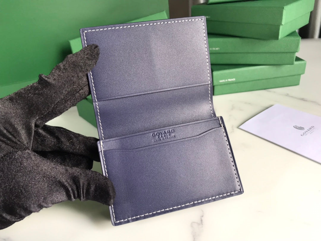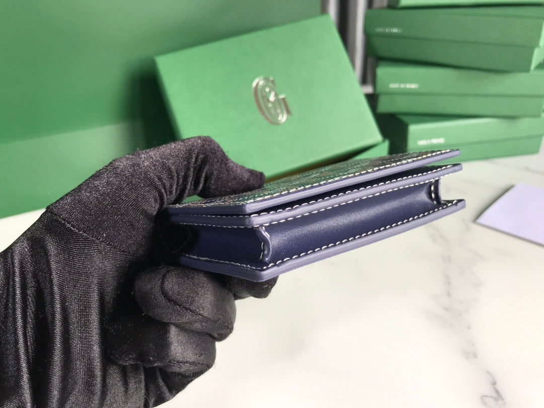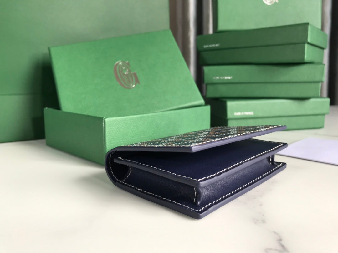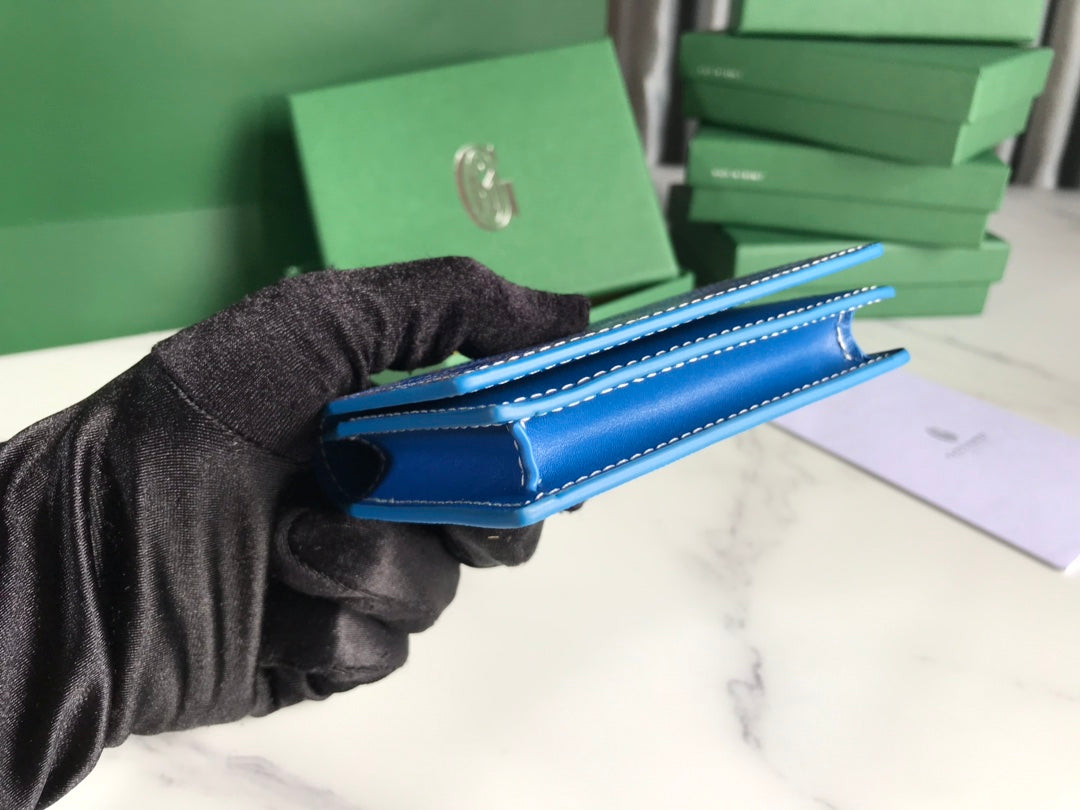 Goyard Malesherbes Card Wallet 10cm Blue Canvas & Calfskin