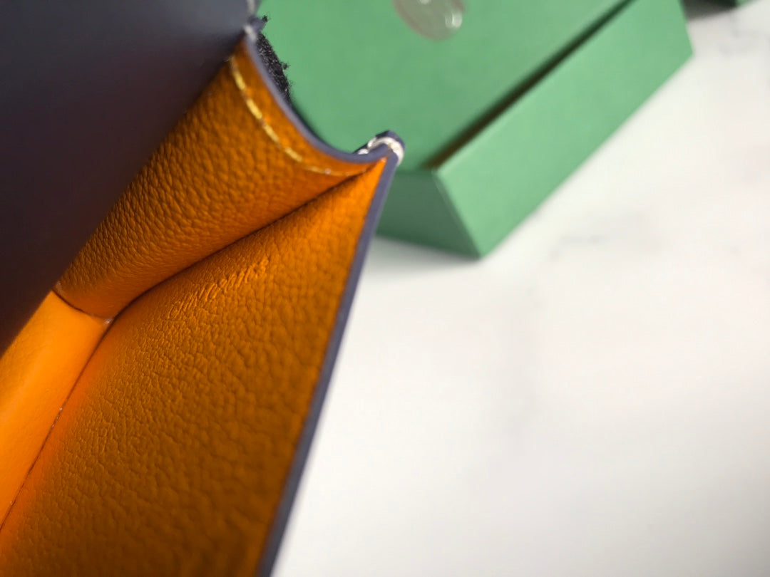 Goyard Malesherbes Card Wallet 10cm Navy Blue Canvas & Calfskin