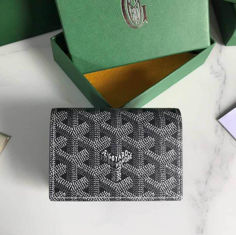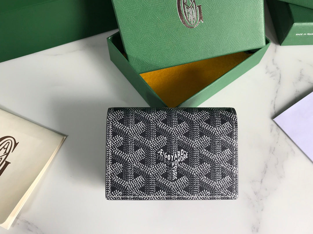 Goyard Malesherbes Card Wallet 10cm Grey Canvas & Calfskin