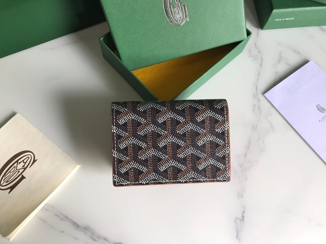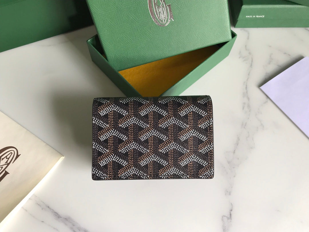Goyard Malesherbes Card Wallet 10cm Black Tan Canvas & Calfskin