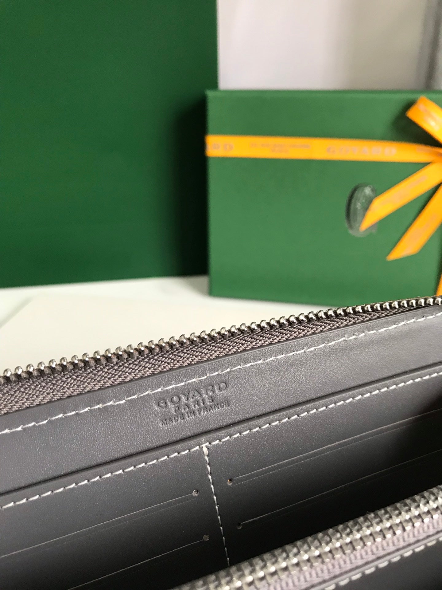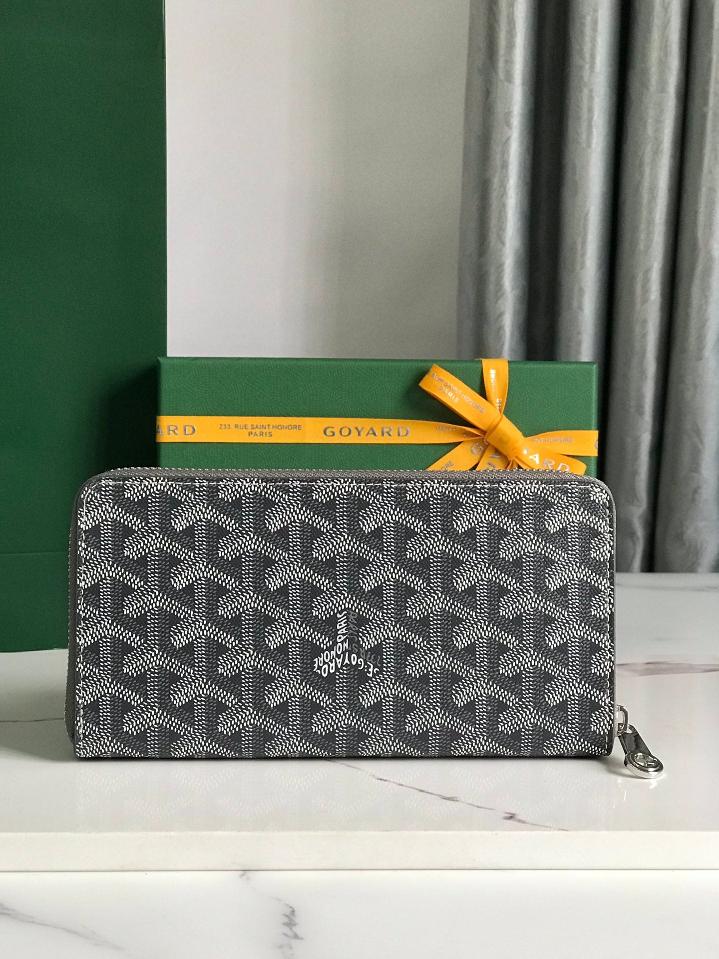 Goyard Matignon GM Wallet 20cm Grey Canvas & Calfskin