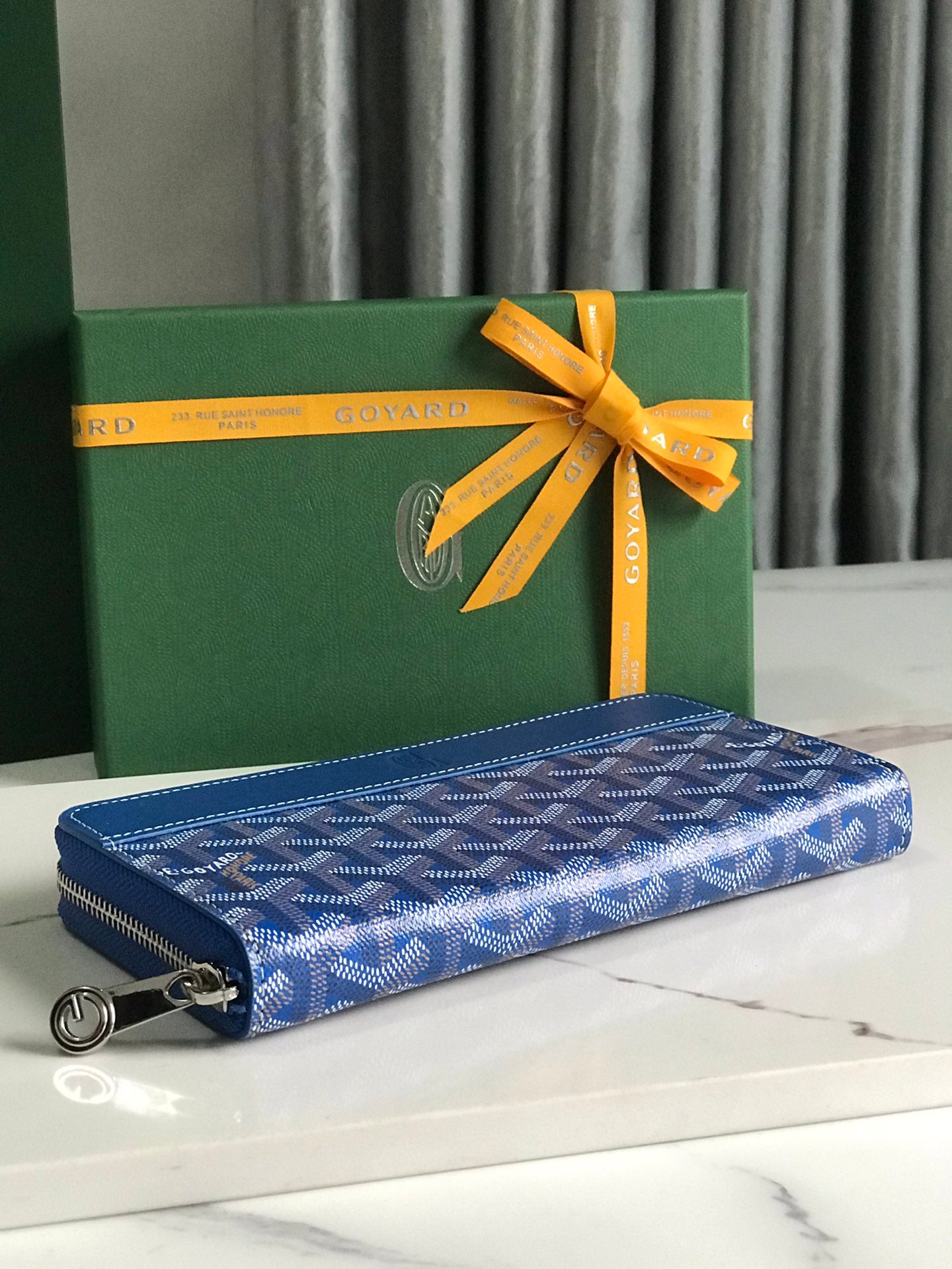 Goyard Matignon GM Wallet 20cm Blue Canvas & Calfskin