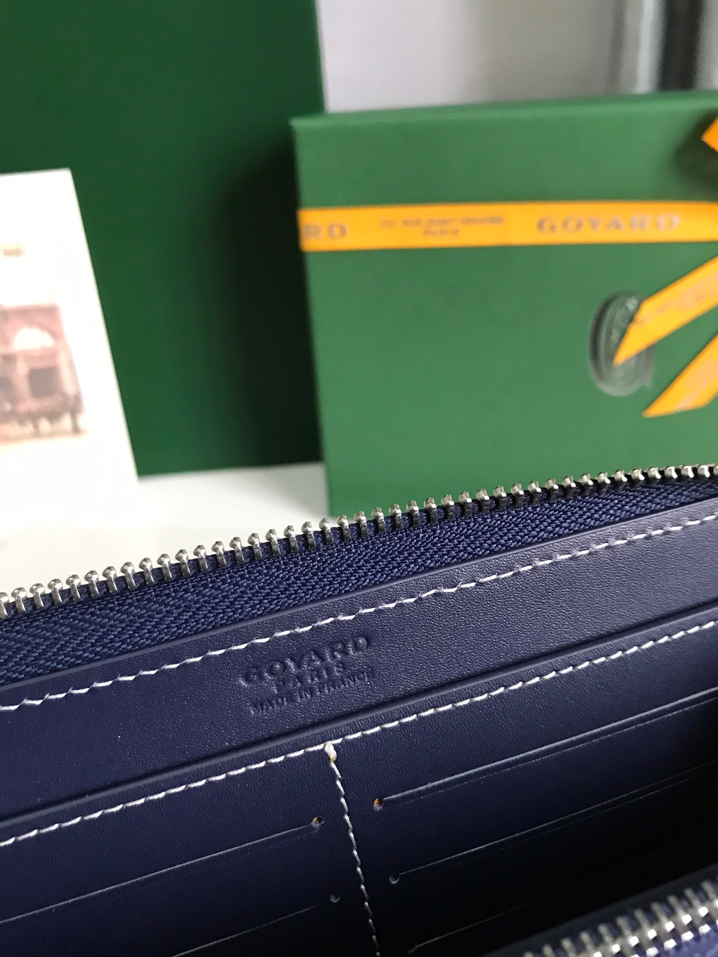 Goyard Matignon GM Wallet 20cm Navy Blue Canvas & Calfskin