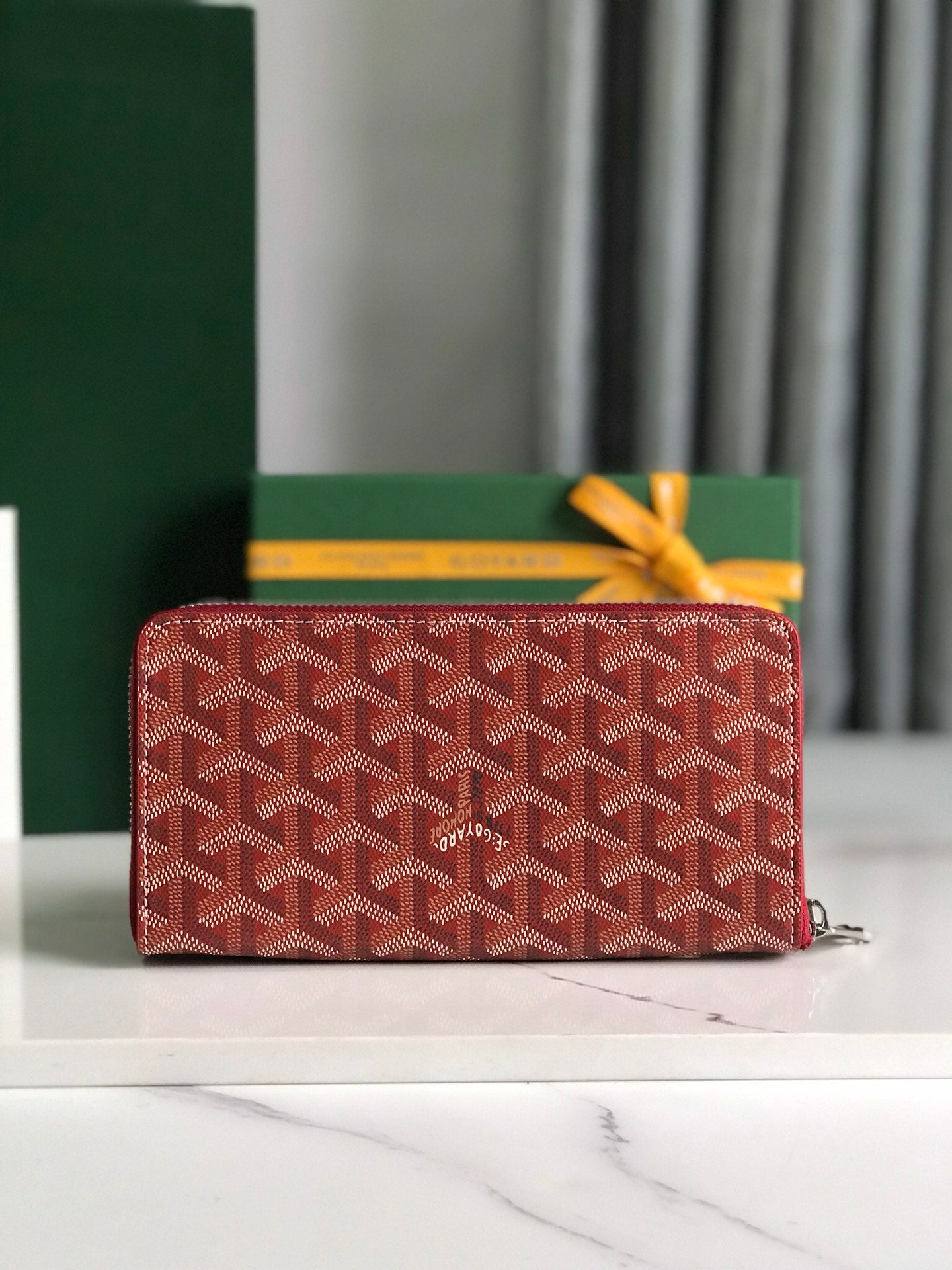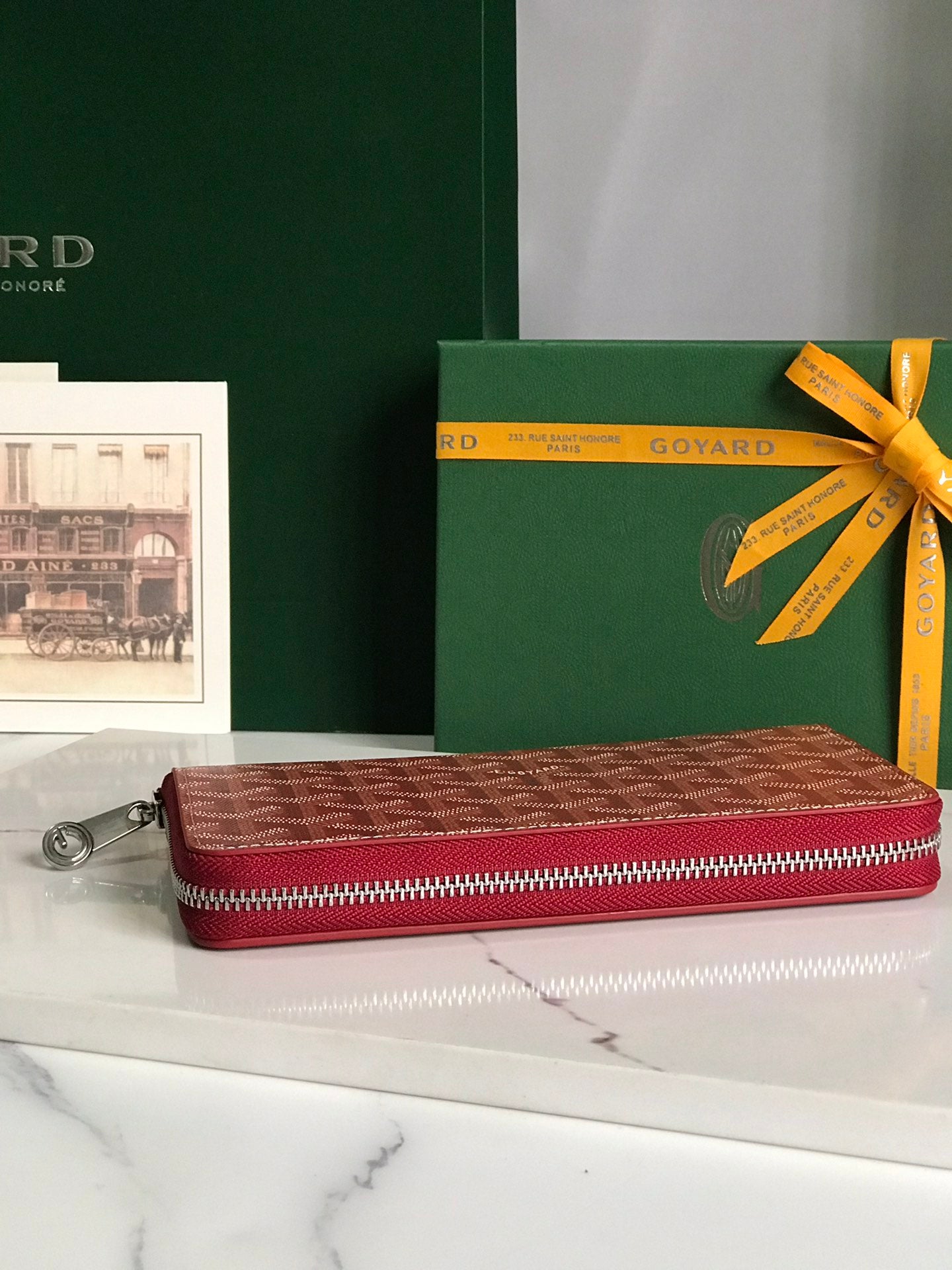 Goyard Matignon GM Wallet 20cm Red Canvas & Calfskin