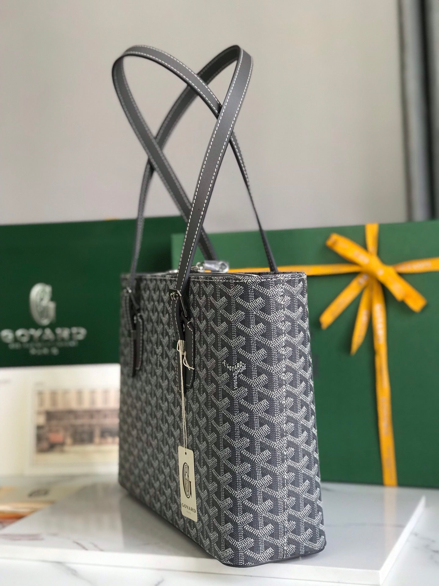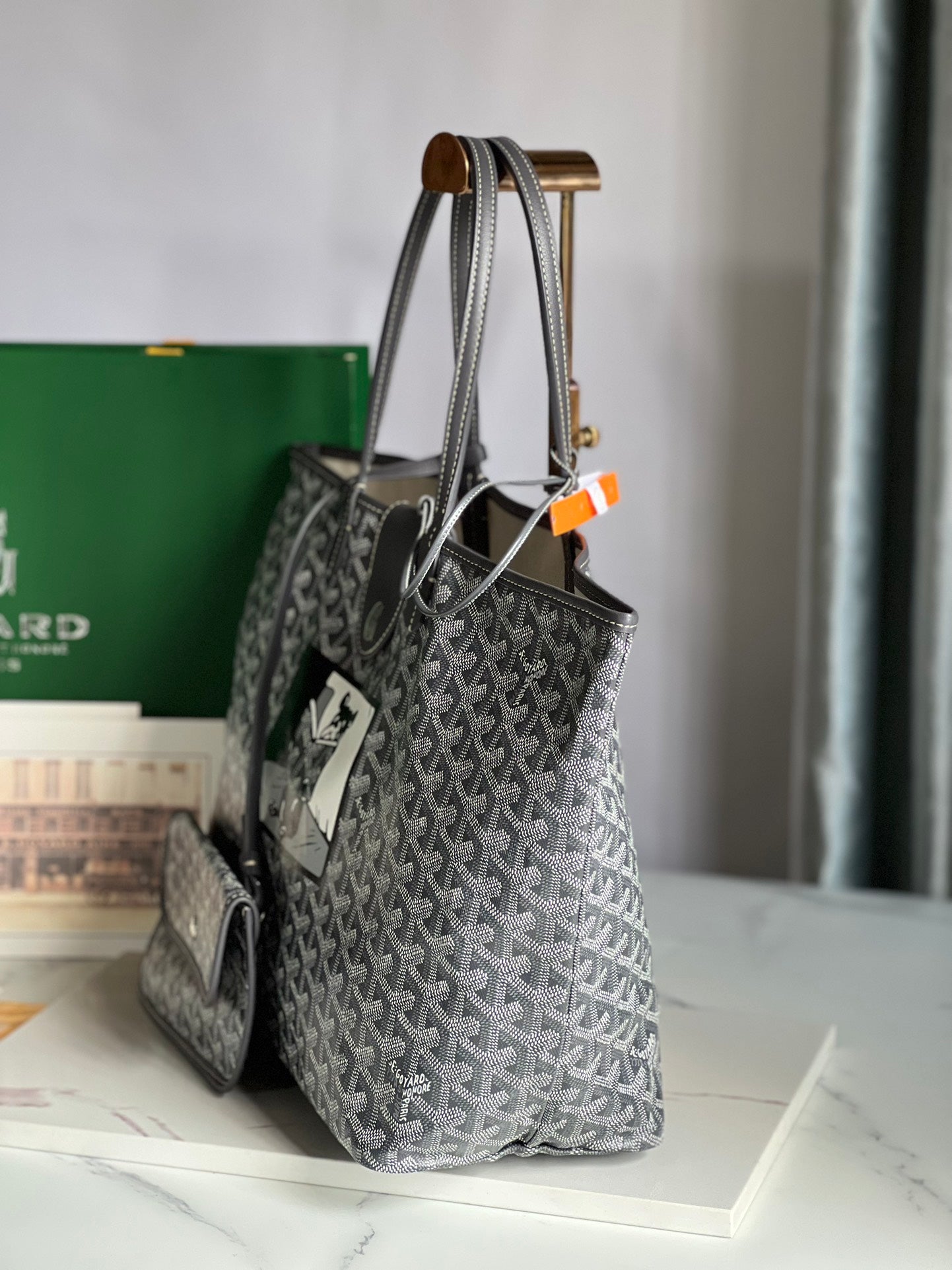 Goyard Hulot Saint Louis PM Bag 34cm Grey Canvas & Calfskin