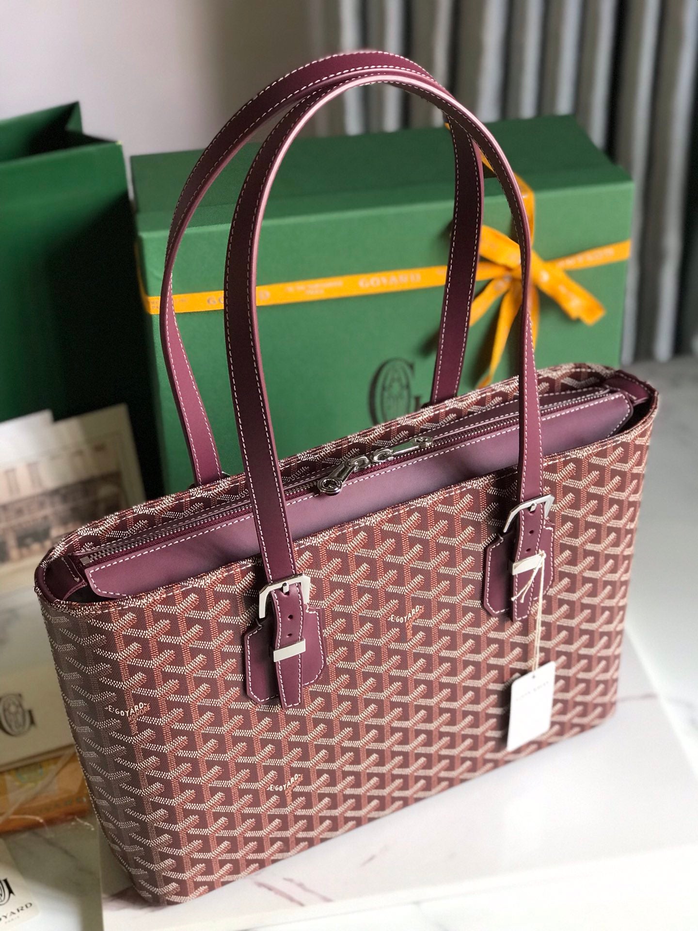Goyard Artois Bag 30cm Burgundy Canvas & Calfskin