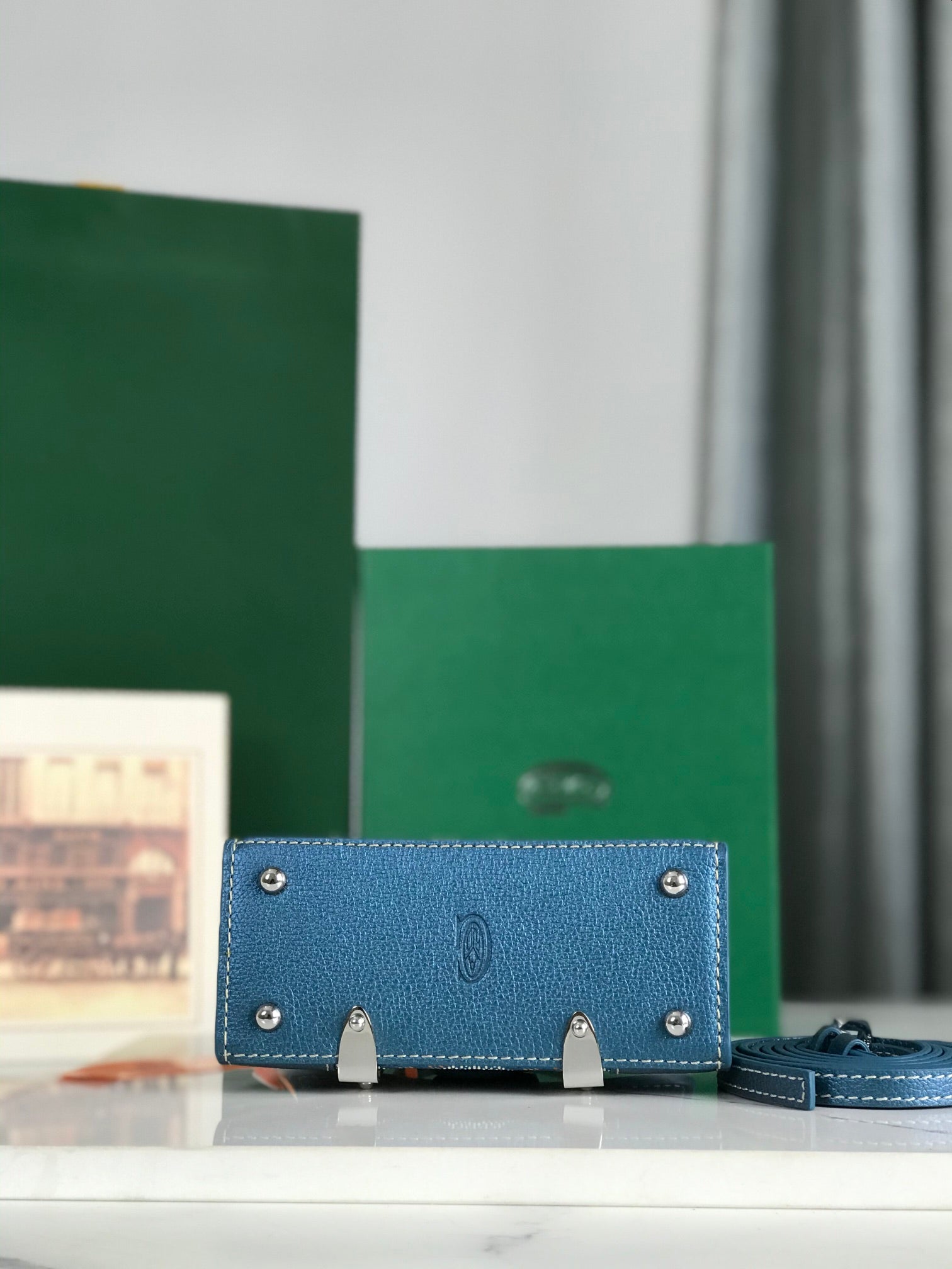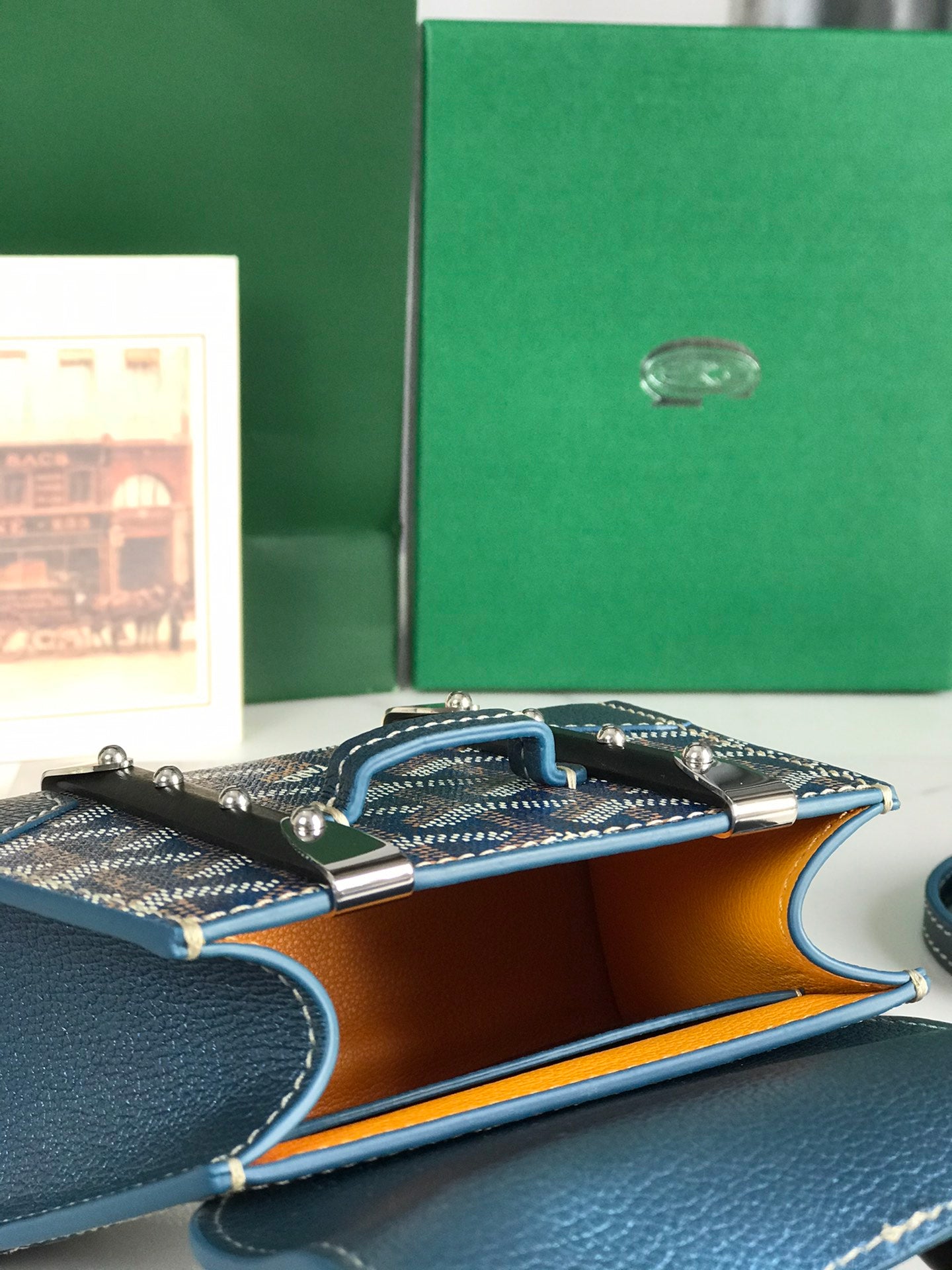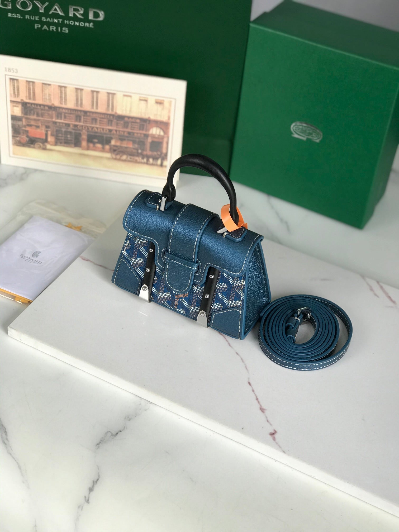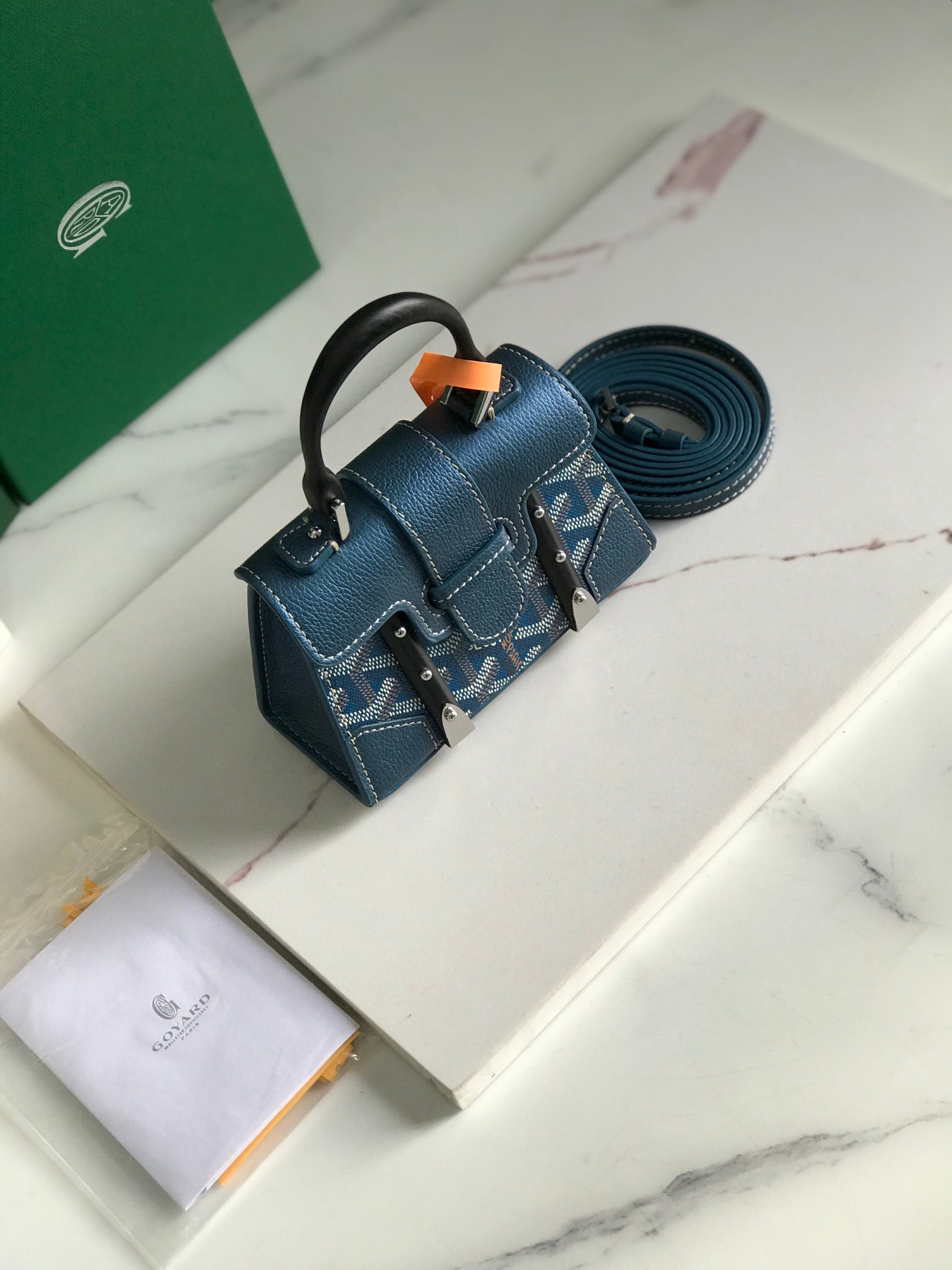 Goyard Saïgon Nano Mini Bag 14.5cm Blue Canvas & Calfskin
