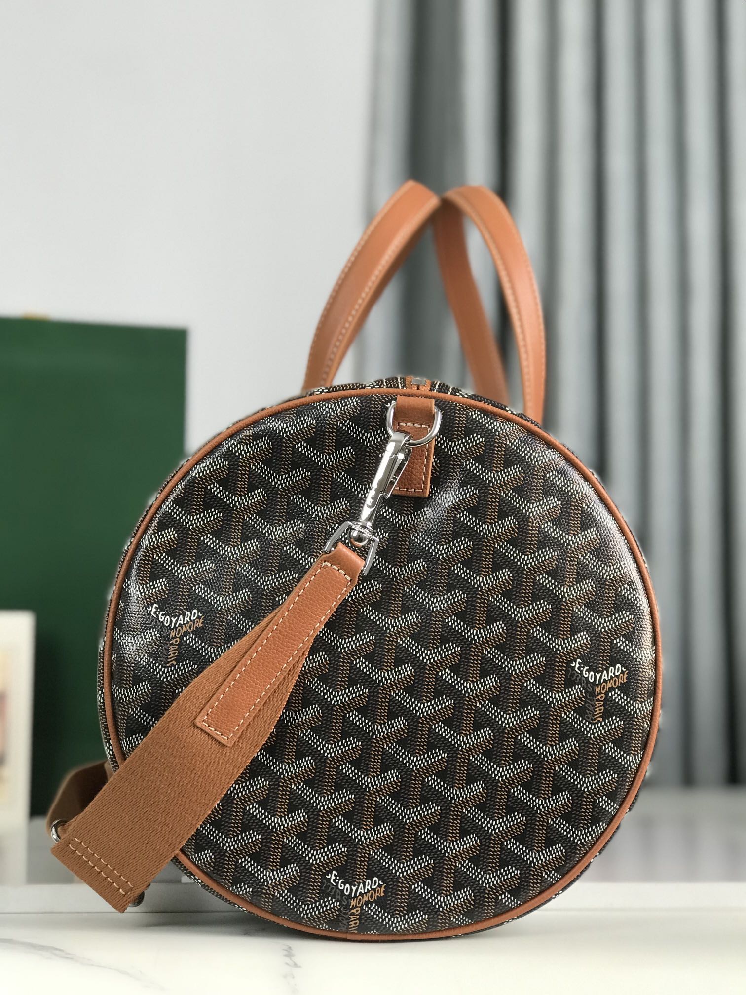Goyard Barrel 40 Sports Bag Black Tan Canvas & Calfskin