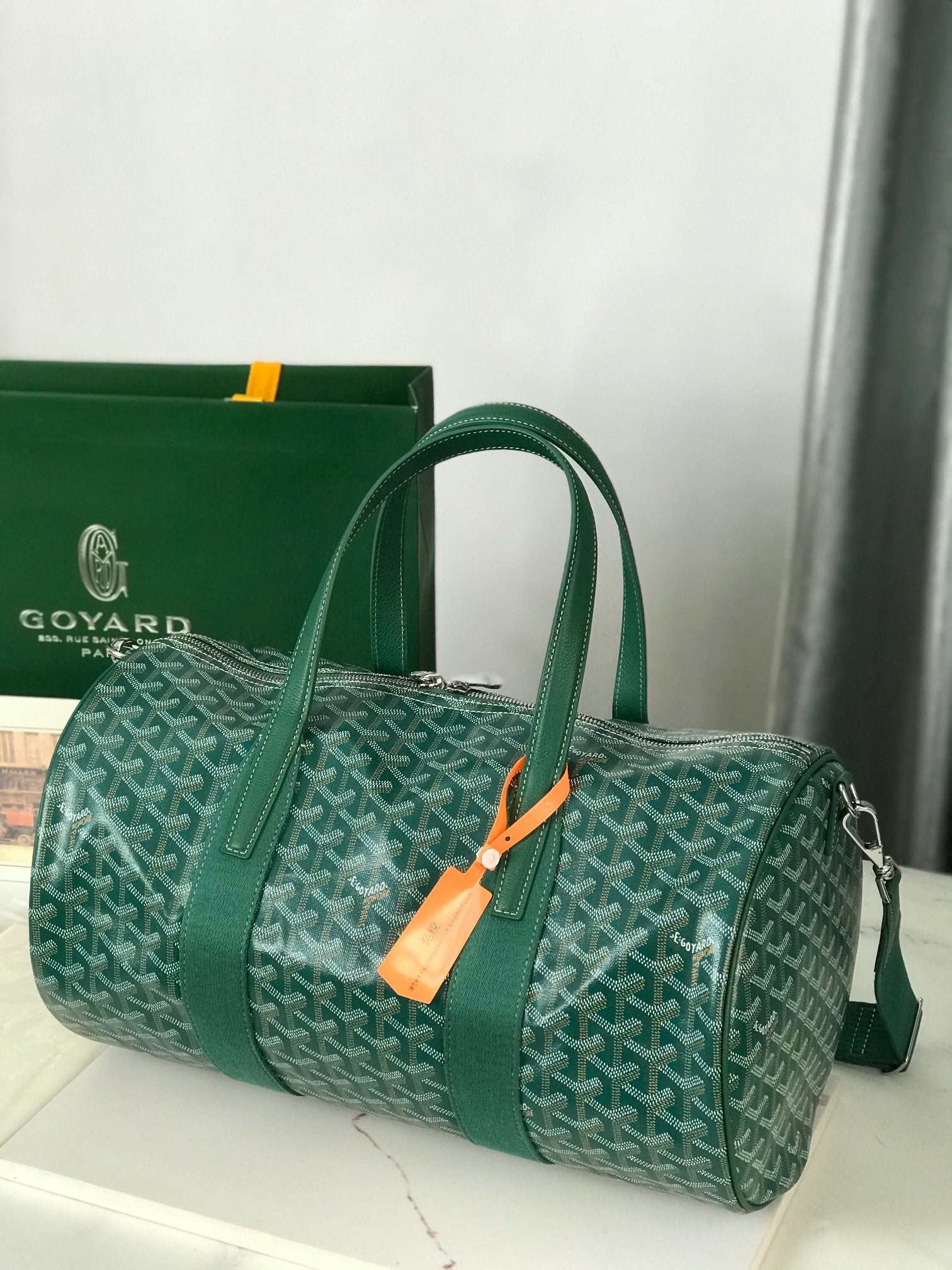 Goyard Barrel 40 Sports Bag Green Canvas & Calfskin